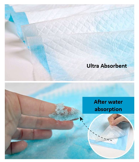 Waterproof backing and ultra absorbent layer ensure optimal absorbency and leak protection