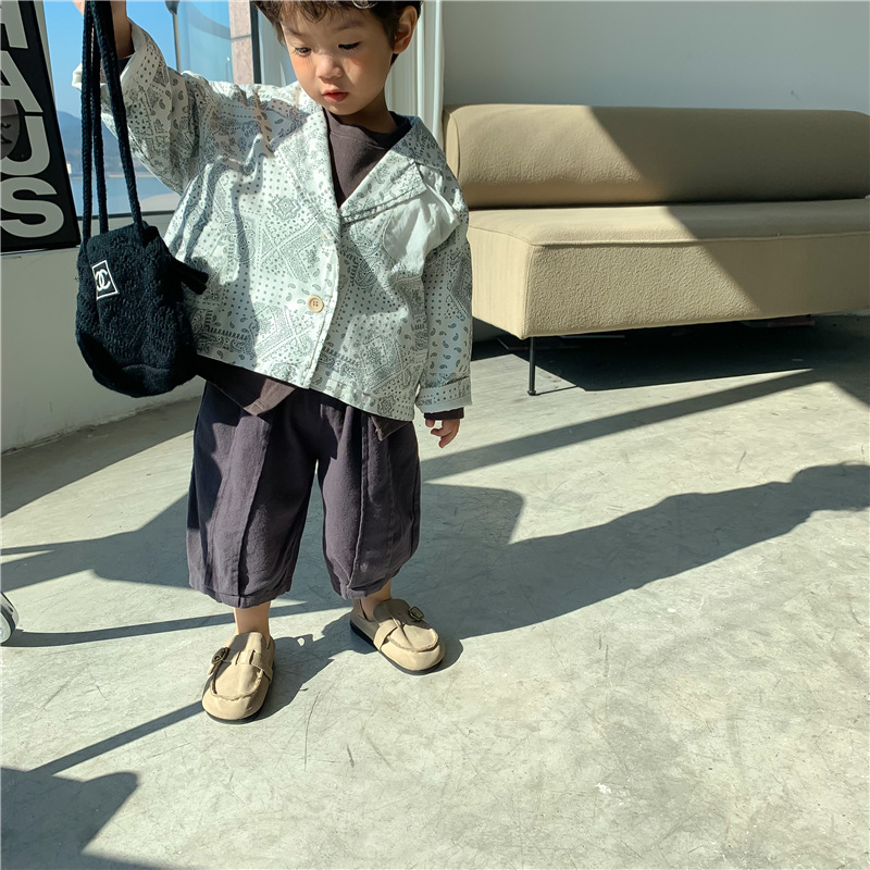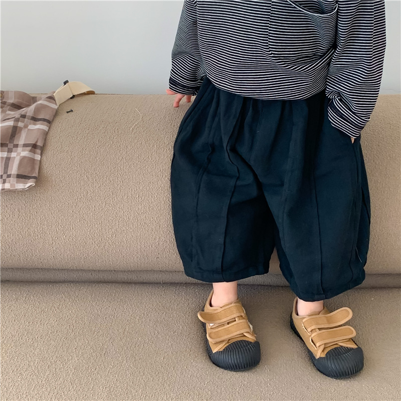 1439C 2022 Spring New Baby Boy's Pants Solid Color Cotton and Linen Straight Cropped Trousers 1-7Year Girl's Loose Leisure Pants|,|