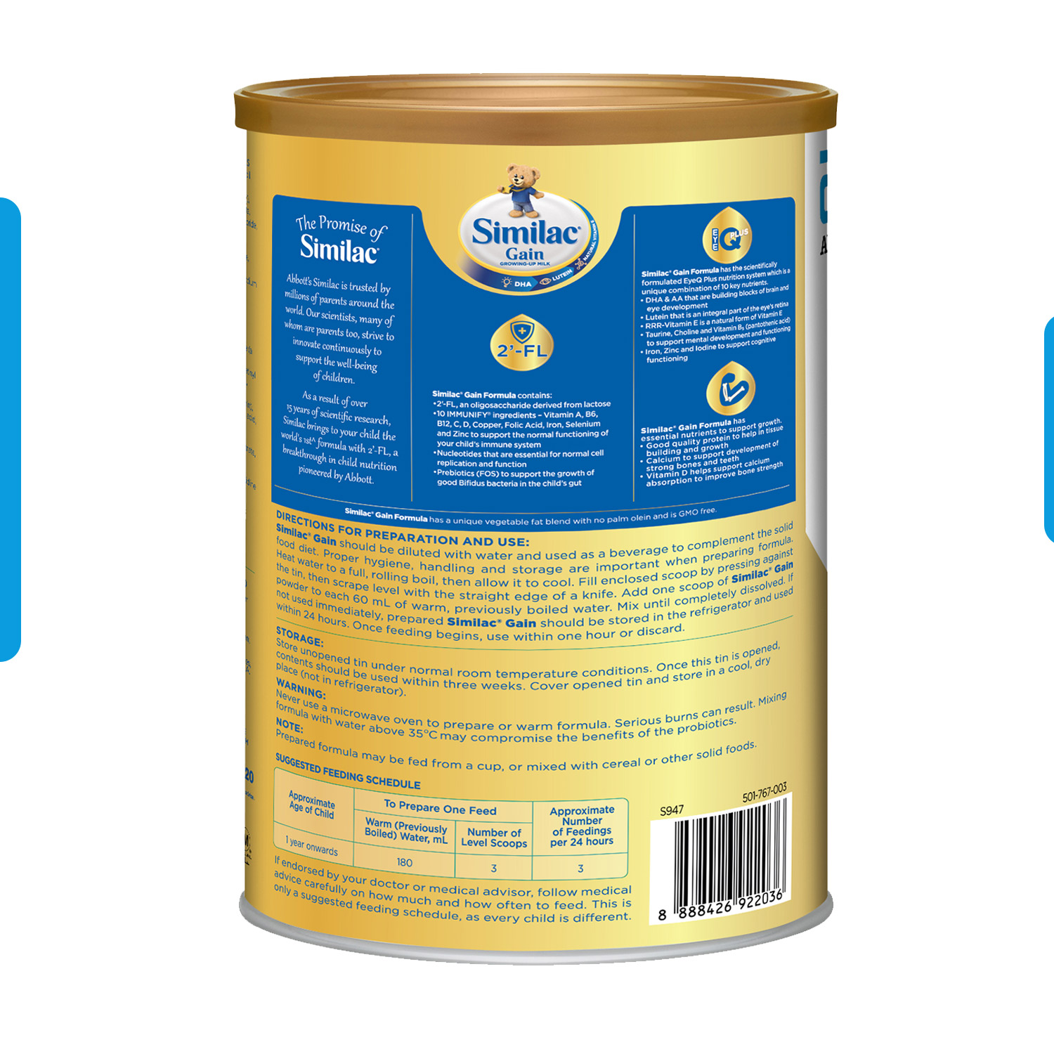 [Bundle of 6] Similac® Stage 3 Gain Growing-Up Baby Milk Powder Formula 2'-FL 1.8kg (1 year onwards)