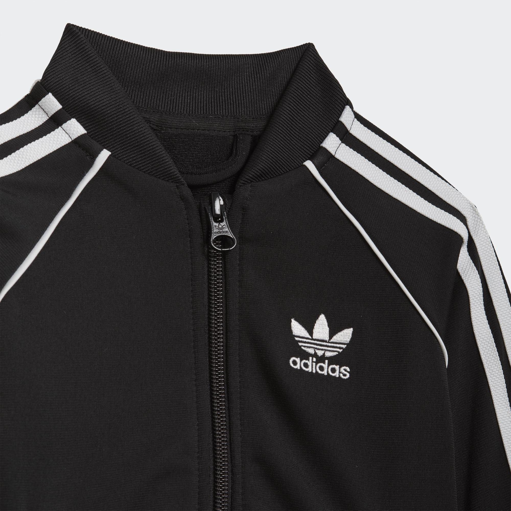 Calling all future MVPs. Your star will win at sporty style in this infants' track suit. Level up their adidas game with iconic 3-Stripes and a hit of piping. That OG sheen of tricot adds the finishing touch. This track suit is made with Primeblue, a high-performance recycled material made in part with Parley Ocean Plastic.