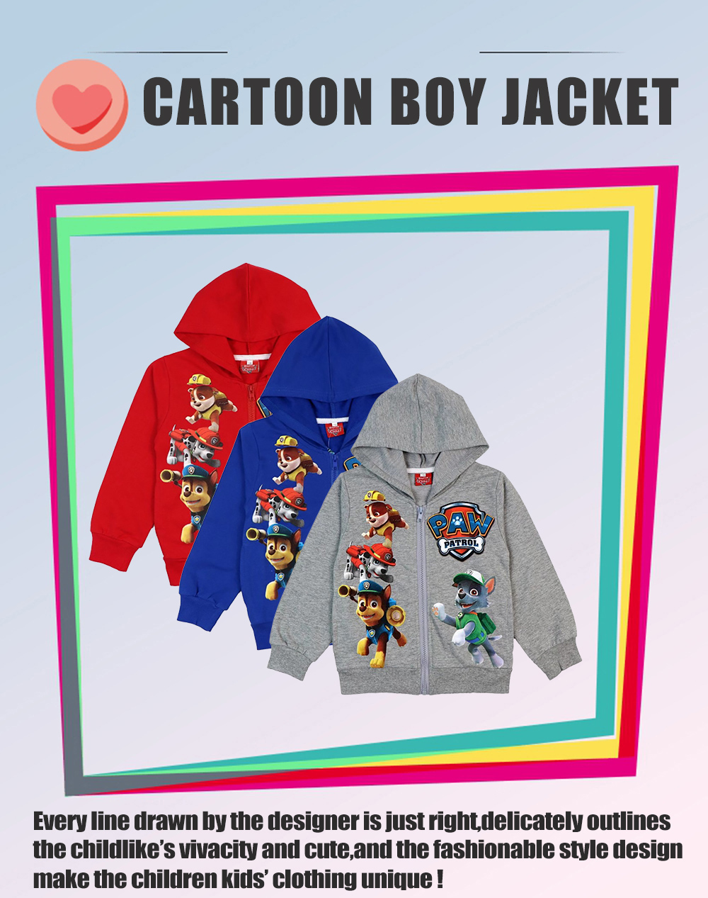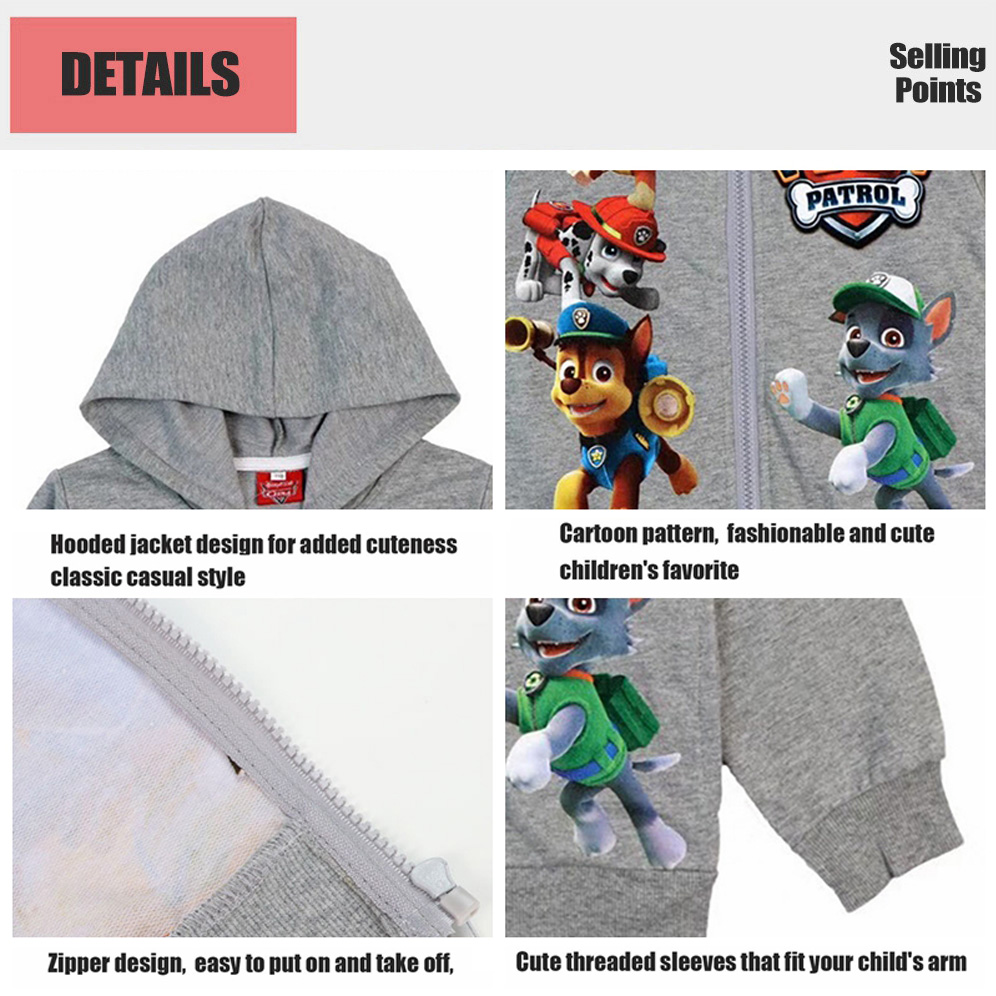 Boy Jacket Coat Cartoon Paw Patrol Pet Dog Print Zipper Long Sleeved Cotton Hooded Sweater Children Jackets 2 to 8 Years
