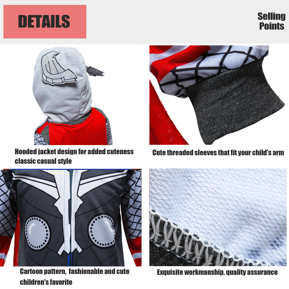 Boys Hooded Jacket Coat Kids Clothing Marvel Superhero Thor Long Sleeve Thin Hoodies Sweaters Coats Jackets 2023 Kid Fashion Jacket, Youth Children Trend. Stylish and fashion design make your baby more attractive Good Material and first class workmanship. Loose and comfortable Daily Wear ,School, Birthday,Party Costume, Best Jacket for Your Kid