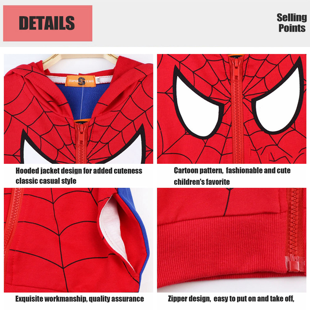 Boys Jackets Coats for Kids Cartoon Spidermans Print Zipper Long Sleeve Cotton Hooded Sweater Boy Coat Jacket Autumn Winter