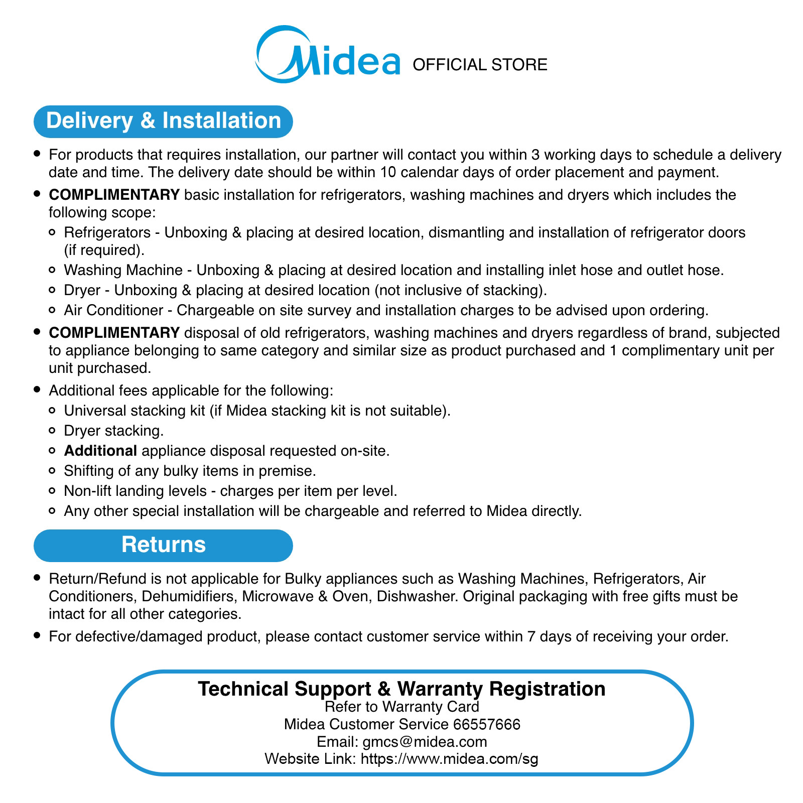 [Bulky] Midea MDK888HP White Heat Pump Dryer, 8kg, Energy Rating 5 Ticks|,|