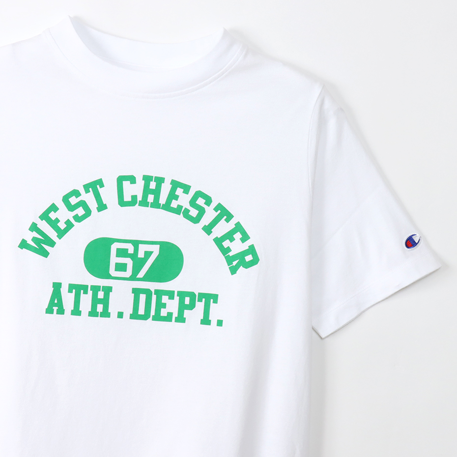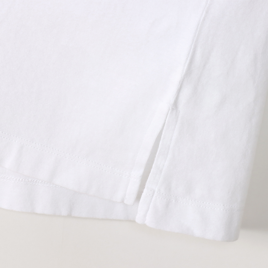 A dry and comfortable short-sleeve T-shirt made from 100% sustainable American cotton "Cotton USA" produced with consideration for the environment. Slits on both sides of the hem. A graphic image of an American city name or college emblem is printed on the front body in a different color for each body color. Due to the product washing process, it has a familiar texture from the beginning of wearing and is difficult to shrink after washing.