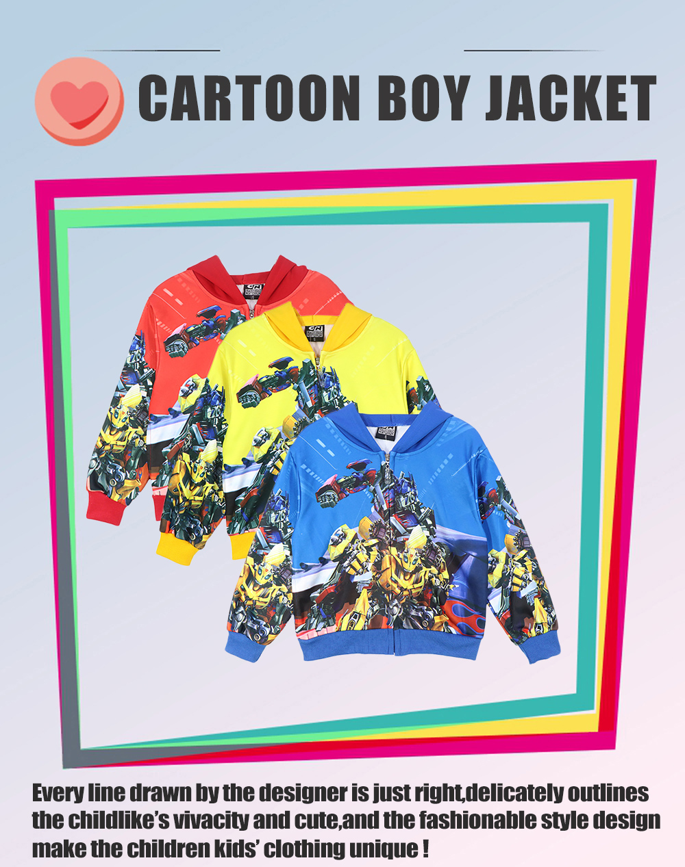 Material: Cotton Pattern: Transformers Fit for: 2 to 8 years old kid Size: S M L XL Sleeve: Long Sleeve Package Included: 1*Kid Jacket