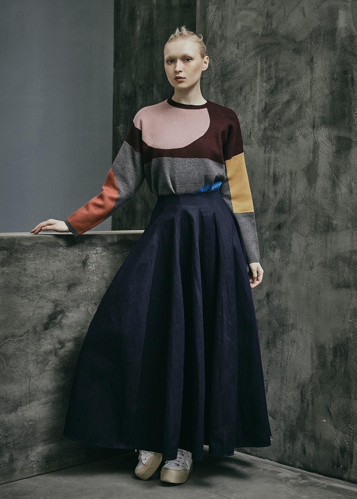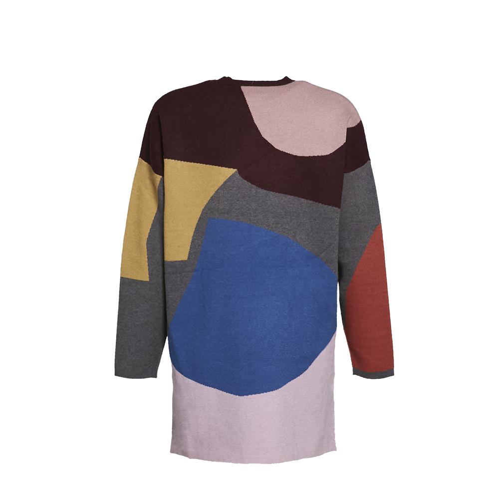CREW NECK OVERSIZED KNITTED SWEATER WITH COLOUR BLOCKING DESIGN|,|