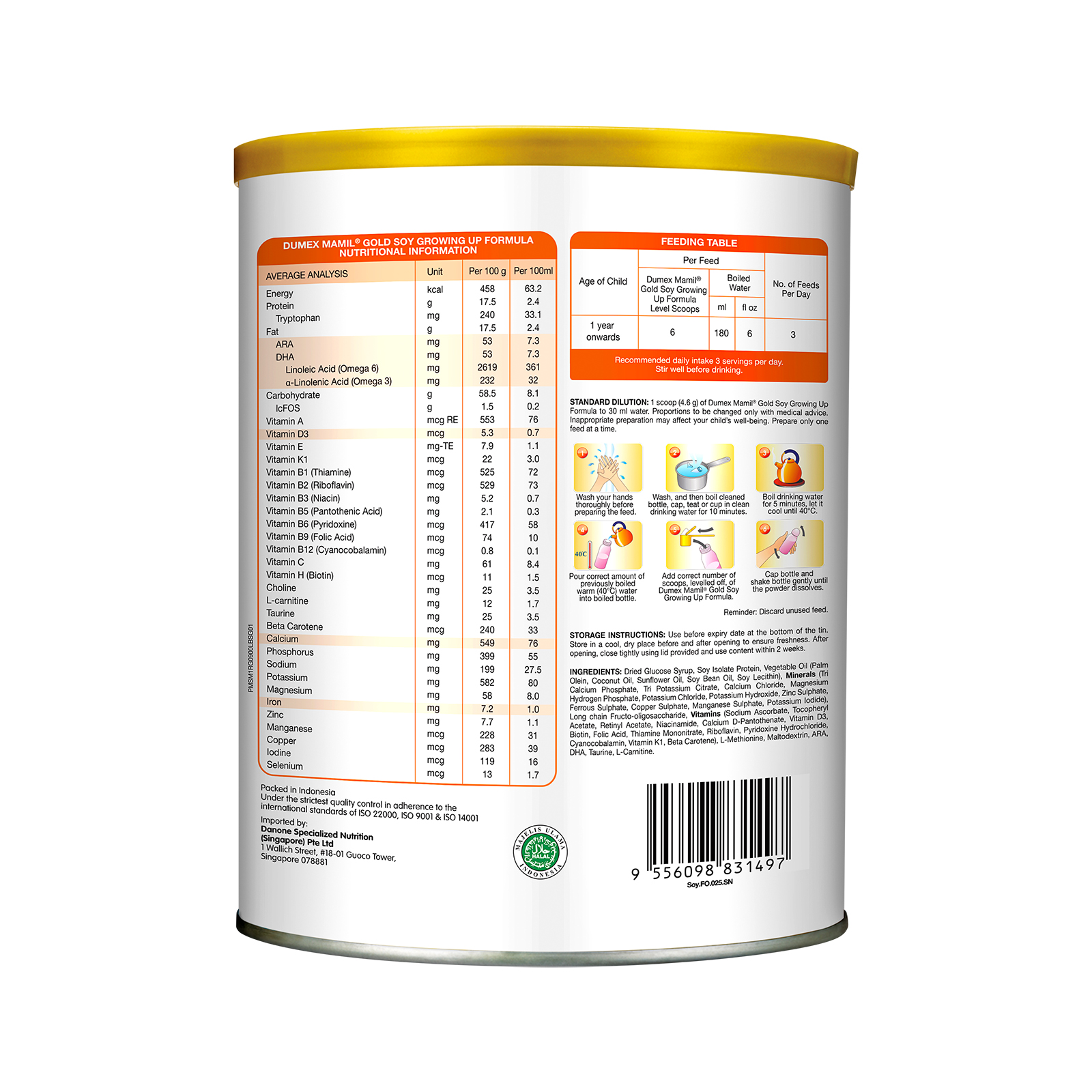 Dumex Mamil Gold Soy Growing Up Milk Formula 800g (1 year onwards)|,|