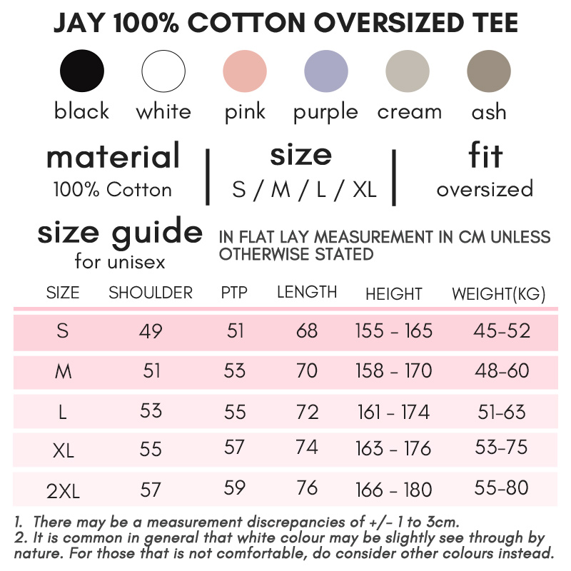 Einashop Jay Oversized Street Wear Plain Tee T-Shirt Women 100% Premium Cotton SG Ship|,|