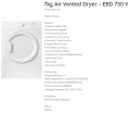 ELBA EBD 750 V (EBD750V) 7KG FRONT LOAD AIR VENTED DRYER|,|