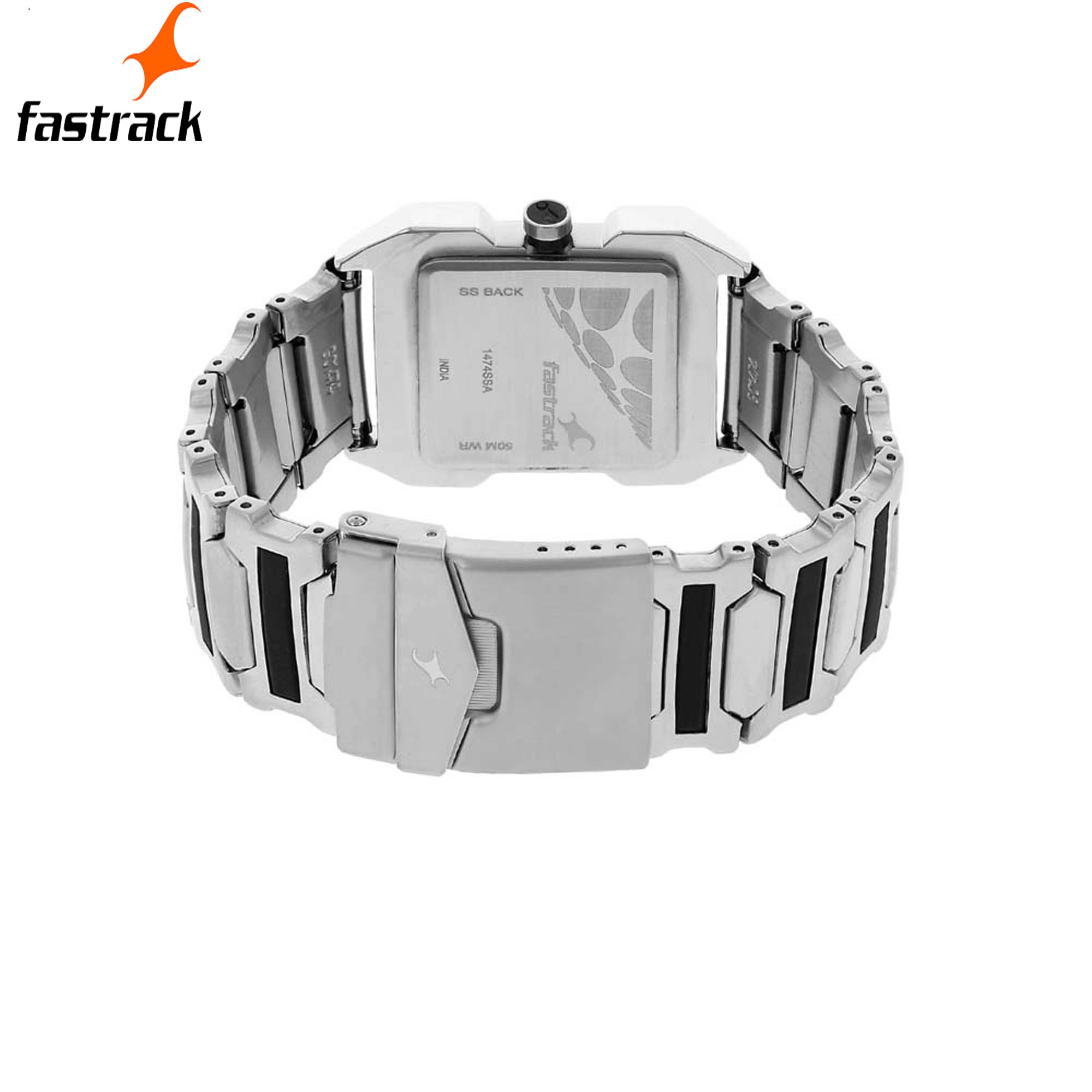 Fastrack Black Dial Silver Stainless Steel Strap Analog Watch For Men's 1474SM02|,|