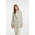 Boyfriend Fit Wide Stripe Blazer in Green. Made with 95% Polyester, 5% Spandex. Machine Wash.