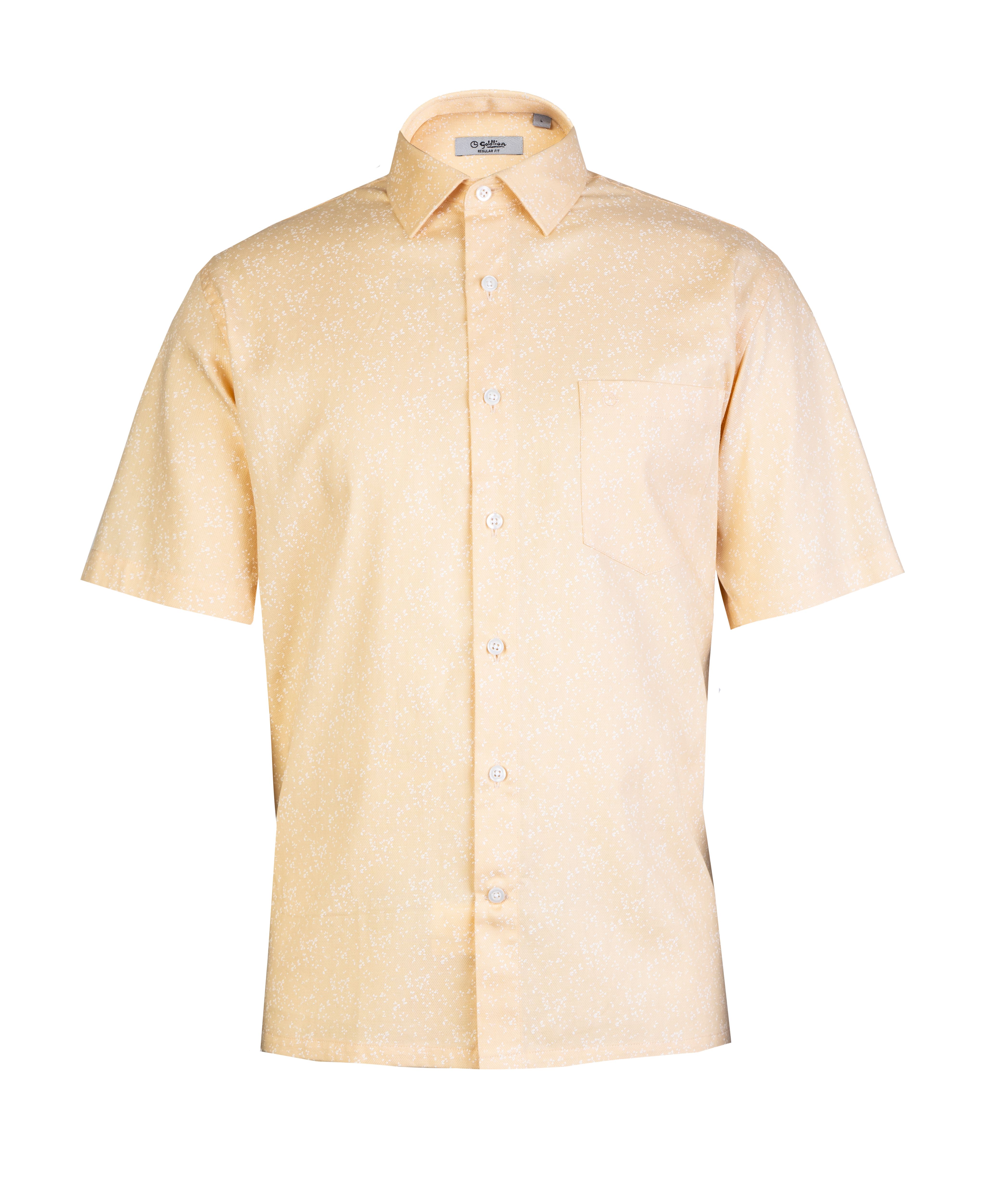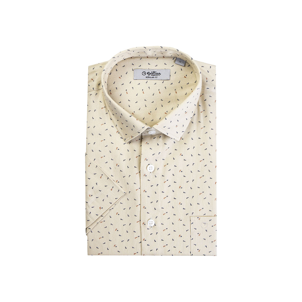 Goldlion Smart Regular Fit Cotton Short-Sleeved Shirt - Cream Printed