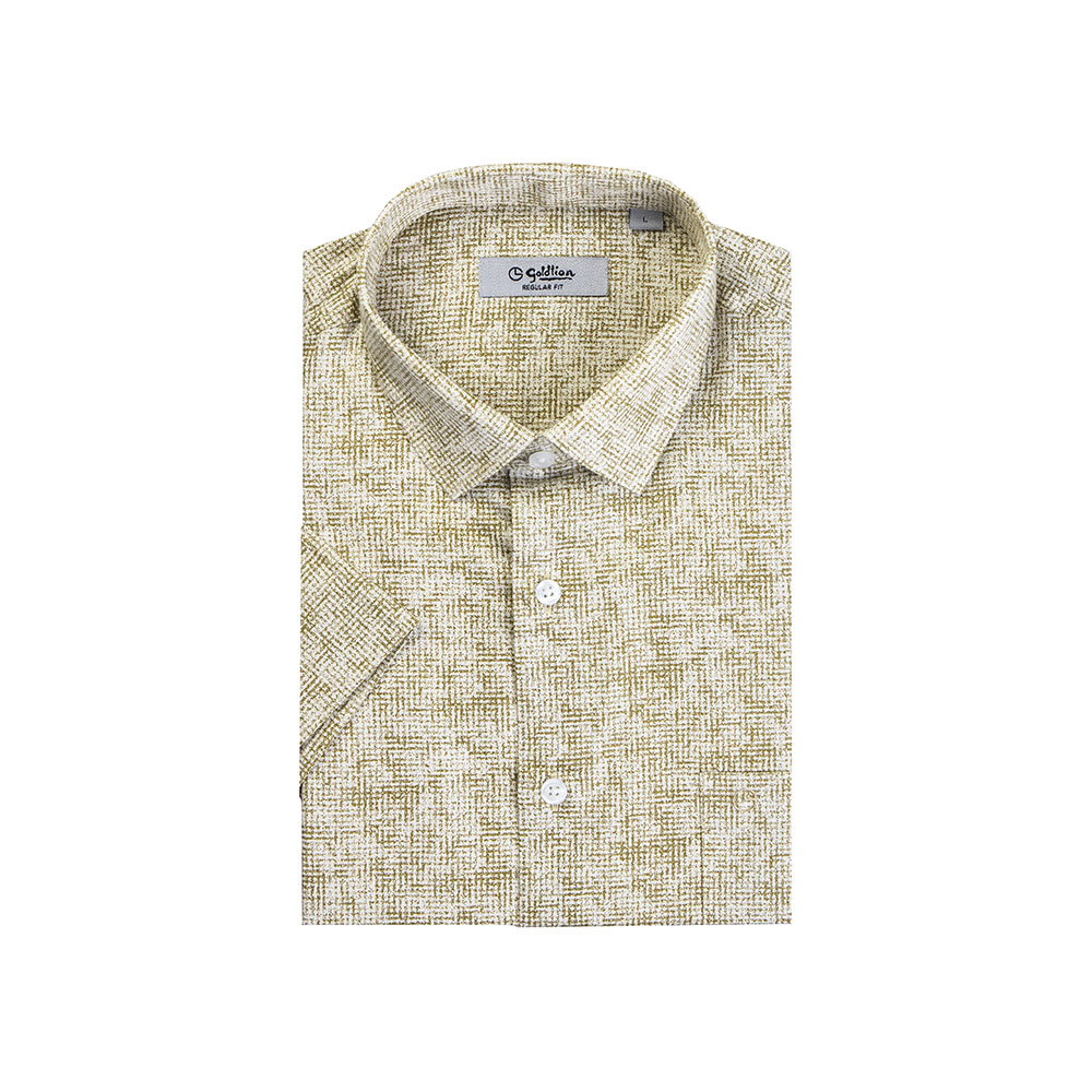 Goldlion Smart Regular Fit Cotton Short-Sleeved Shirt - Gold Printed