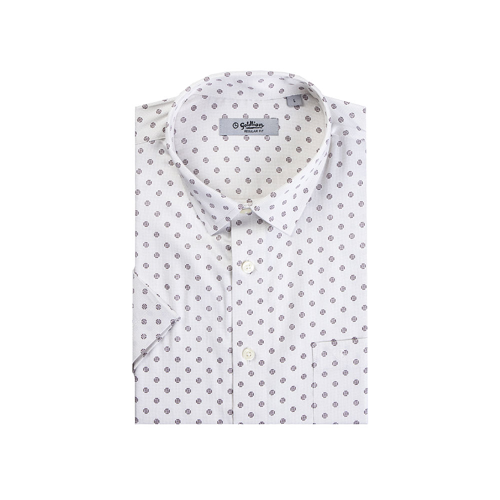 Goldlion Smart Regular Fit Cotton Short-Sleeved Shirt - White Dotted