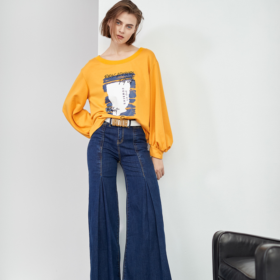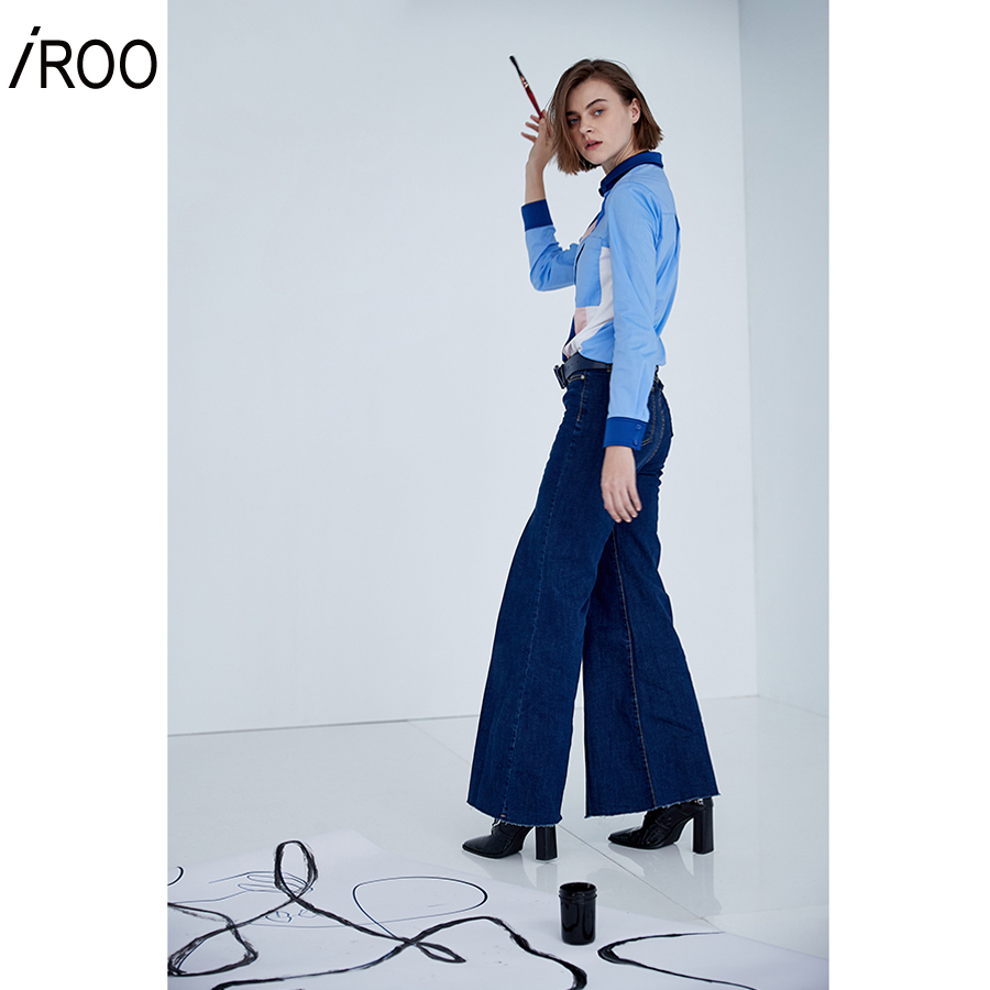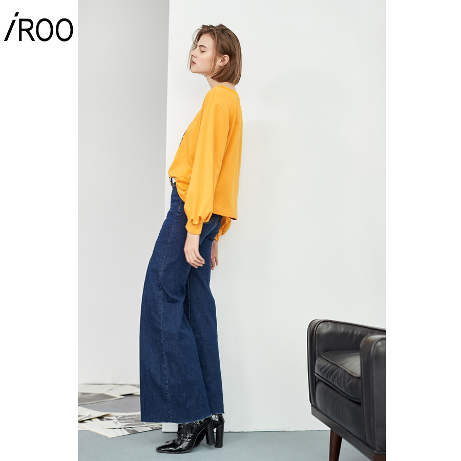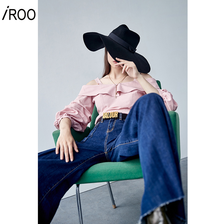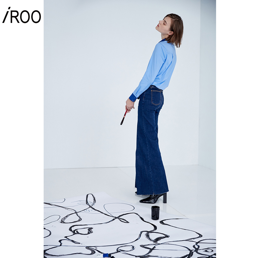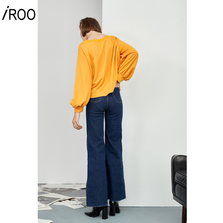 iROO Woman Clothing High Waist Flare Jeans|,|