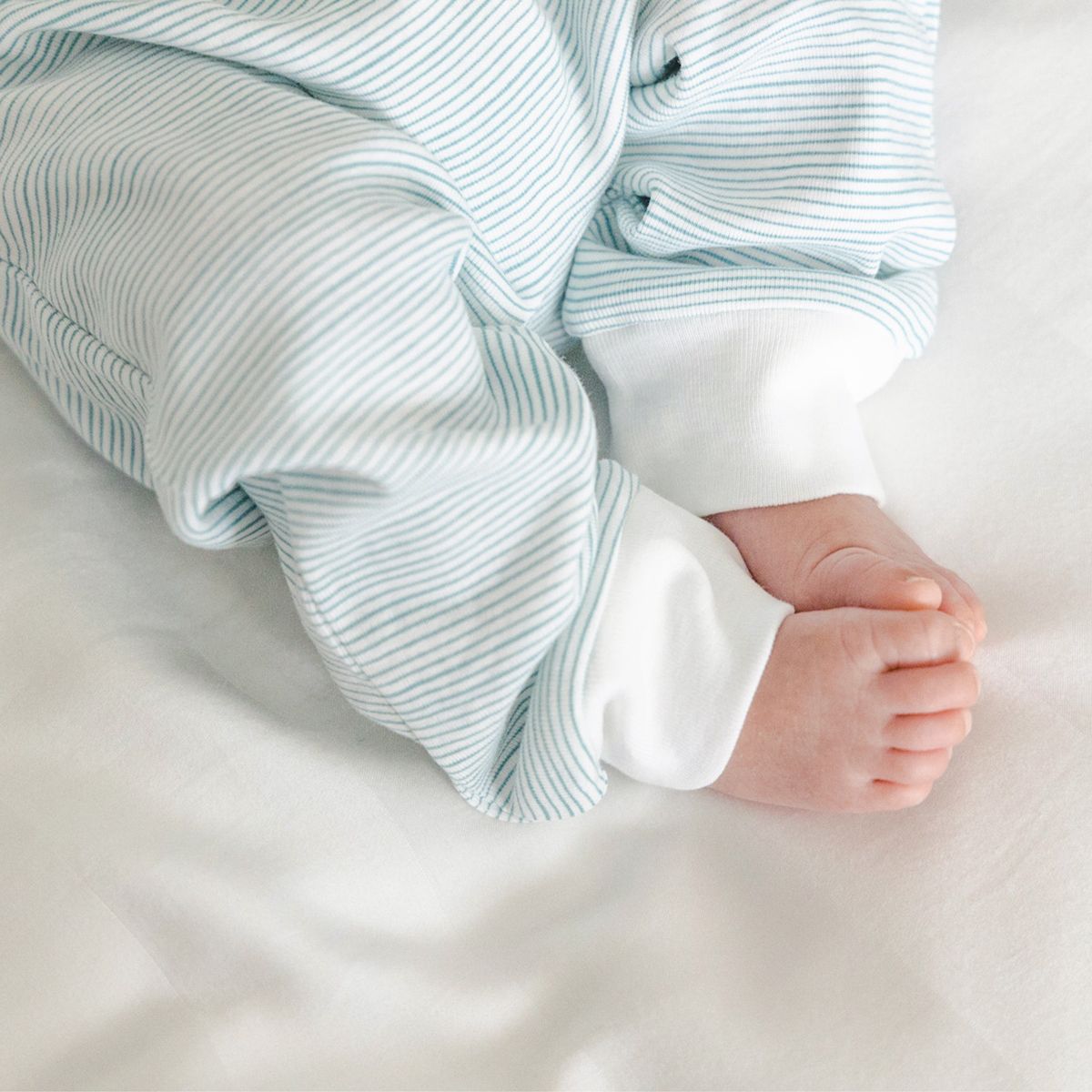 Run around in comfort and style with our latest blue stripe printed leggings. Made of the softest organic cotton, this baby essential completes bub's night-time routine and will put your little one right to sleep!