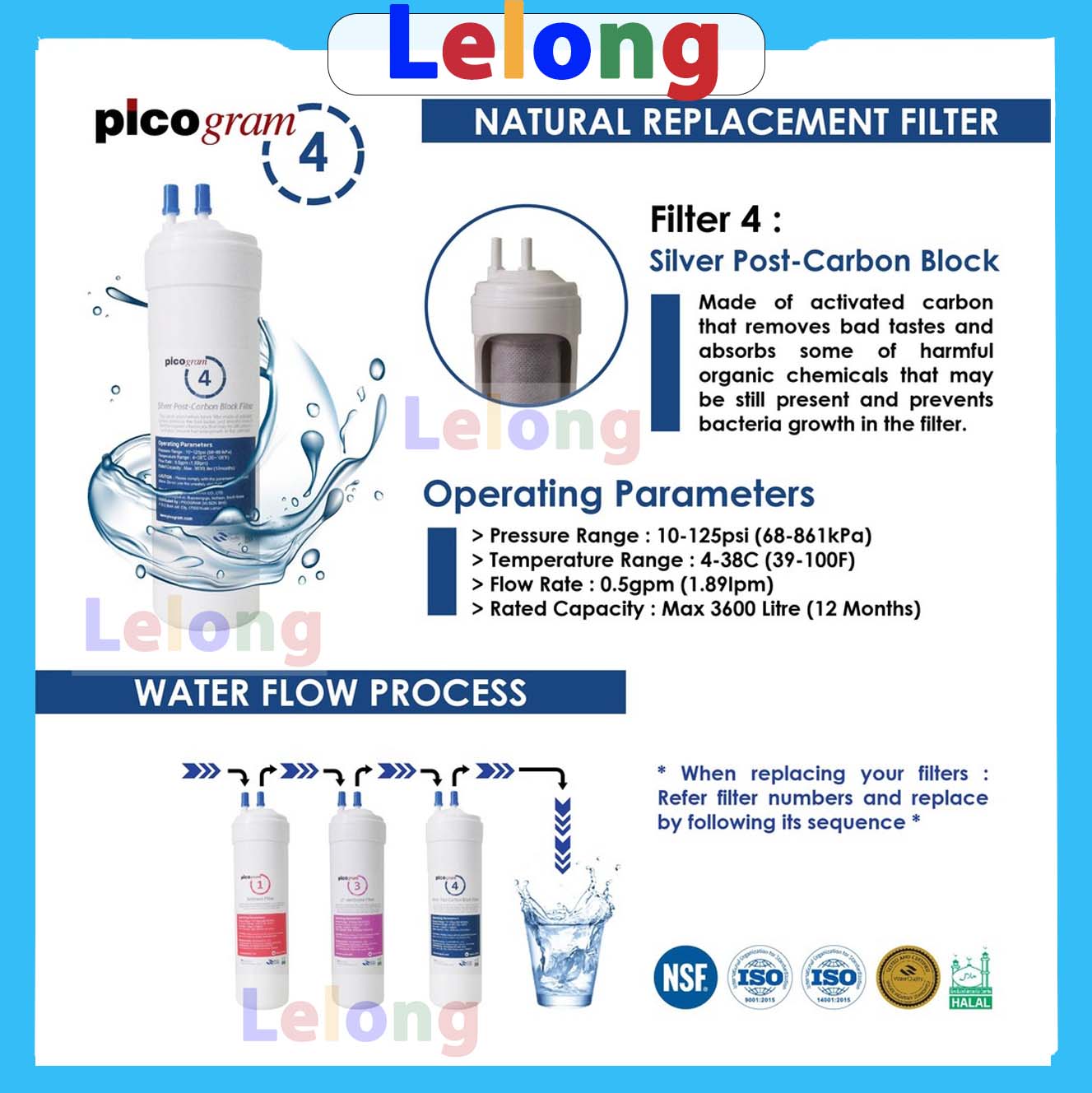 SILVER-POST-CARBON FILTER (Capacity:3600L): This silver post-carbon block filter made of activated carbon removes the bad tastes and absorbs some of the harmful organic chemicals that may be still present and also prevent bacteria growth in the cartridge.