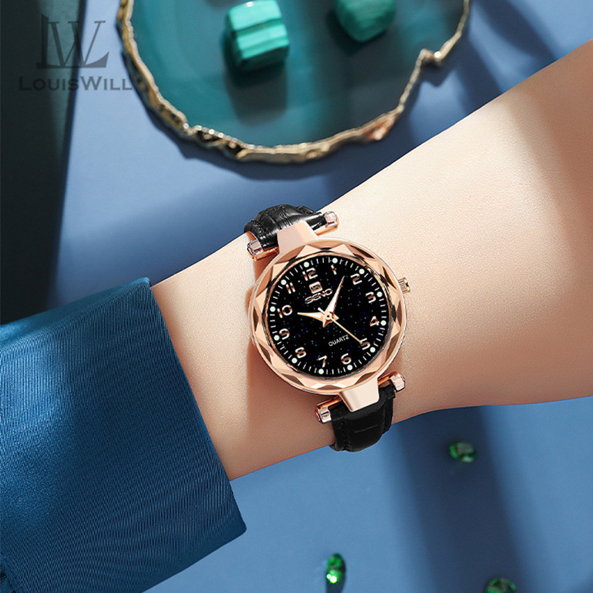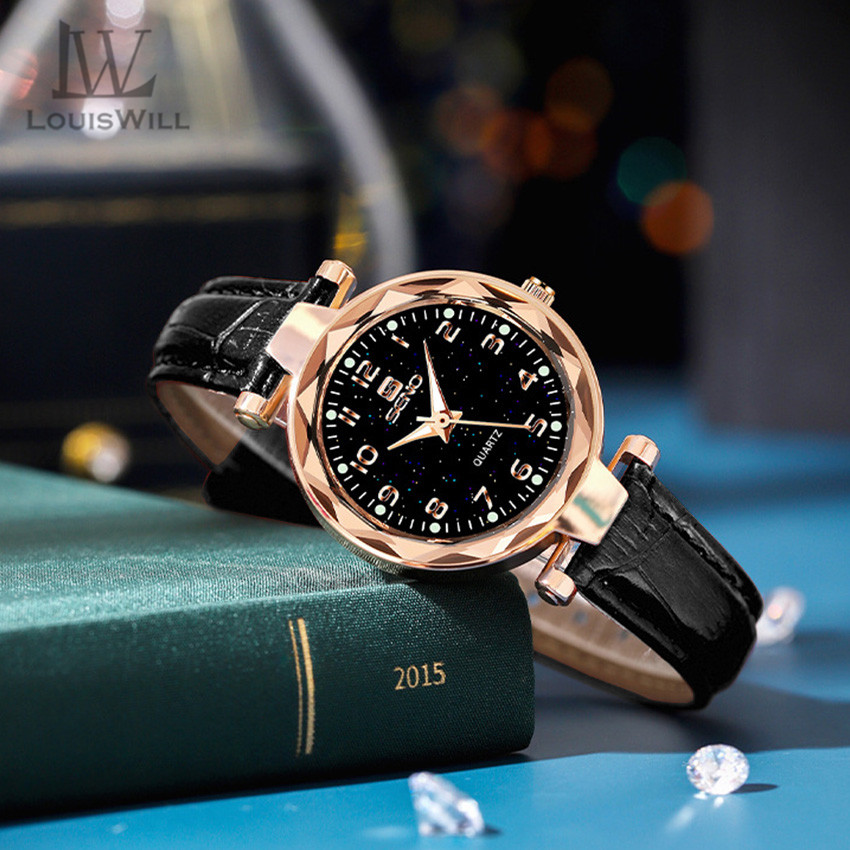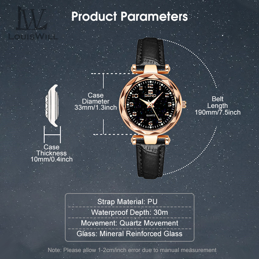 - Fashionable Design: Smooth and fashionable PU strap, romantic star diamond dial design, diamond cut mirror, show your unique charm.