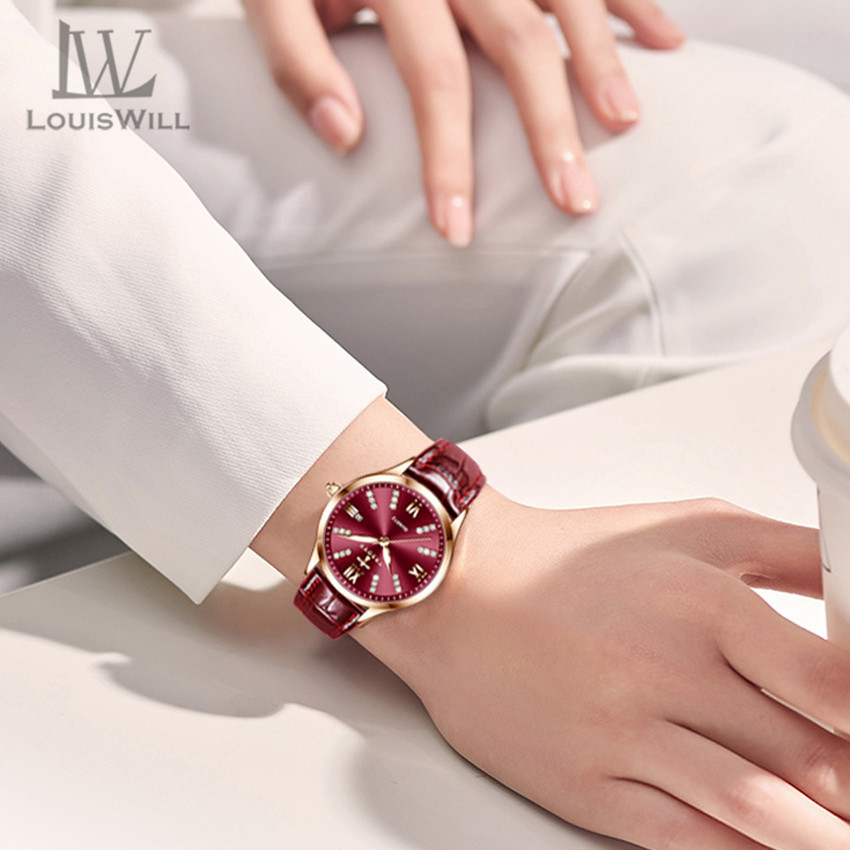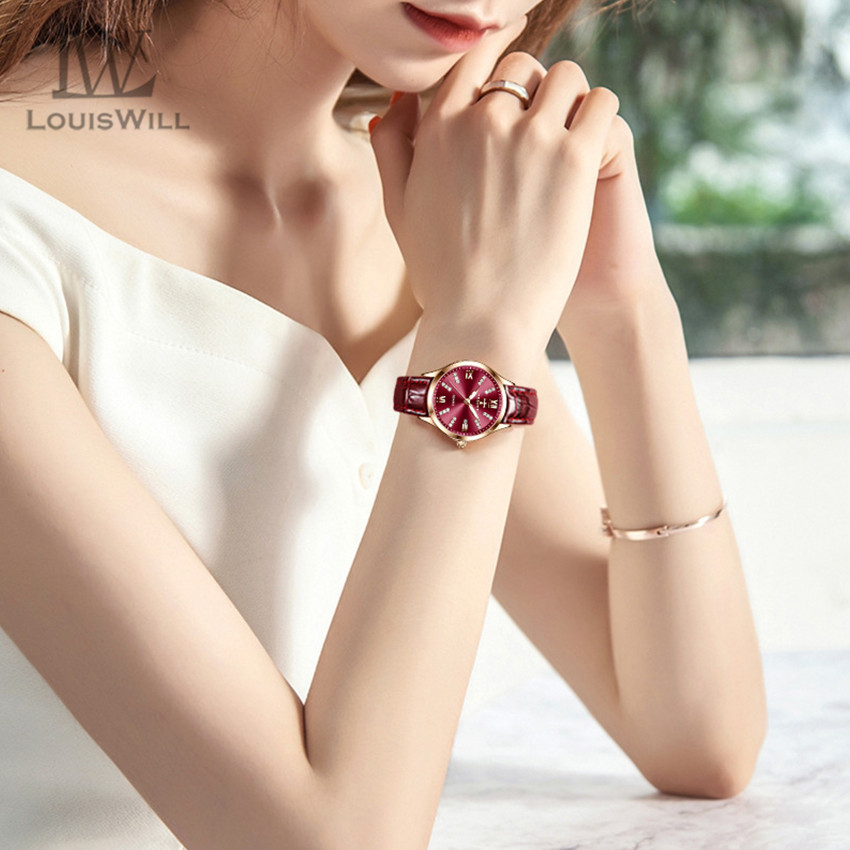 LouisWill Women Watches Diamond Casuals Retro Leather Strap Watches Quartz Watches Calendar Dial Luminous Pointer Watches 3ATM Waterproof Watches Business Wristwatch for Women Ladies|,|