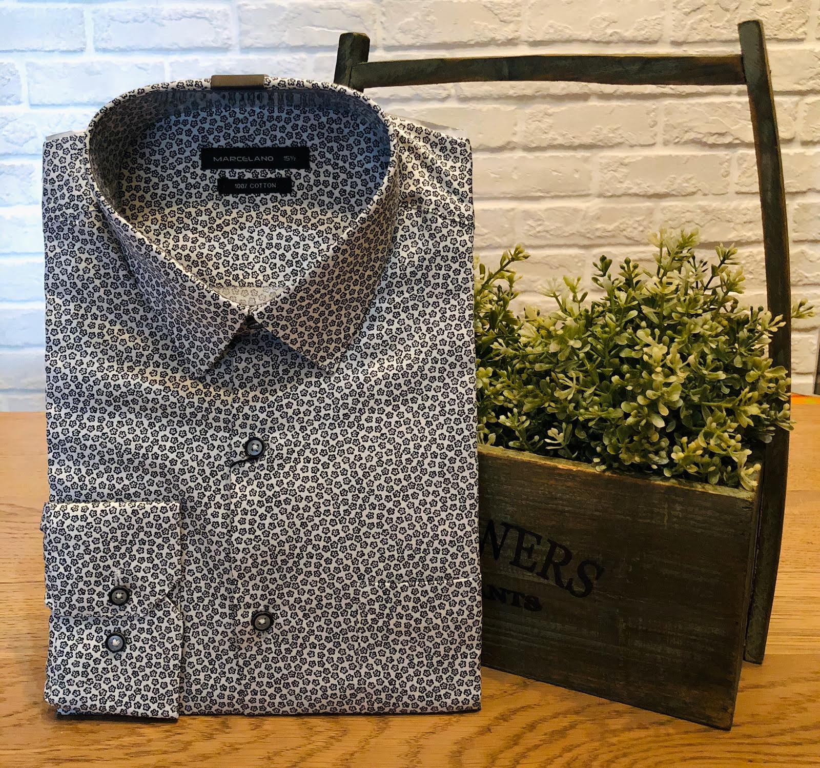 MARCELANO Men Printed Sateen Shirt Slim Fit Long Sleeve Casual Wear|,|