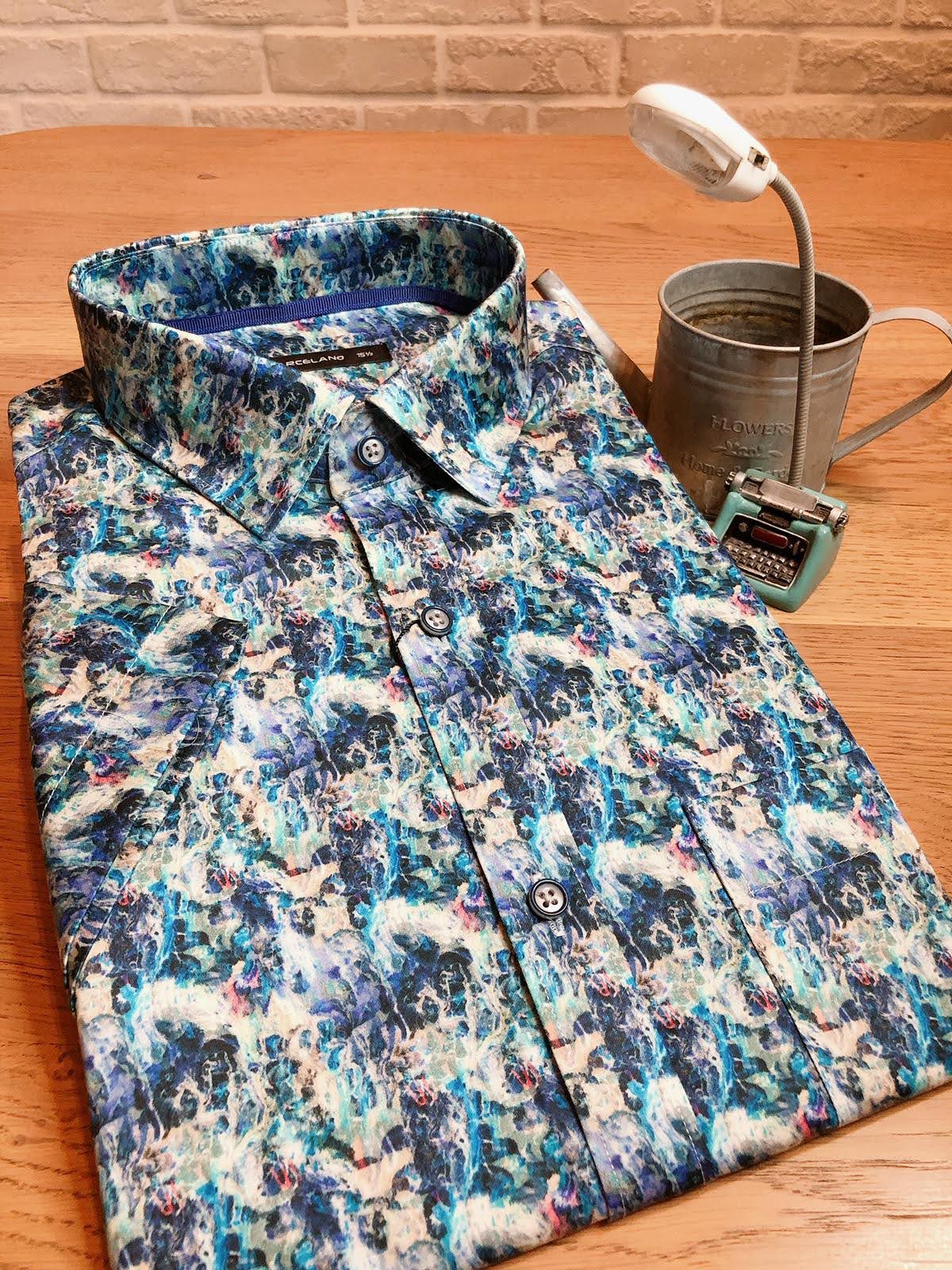 MARCELANO Premium Men Slim Fit Printed Short Sleeve Smart Casual Shirt|,|