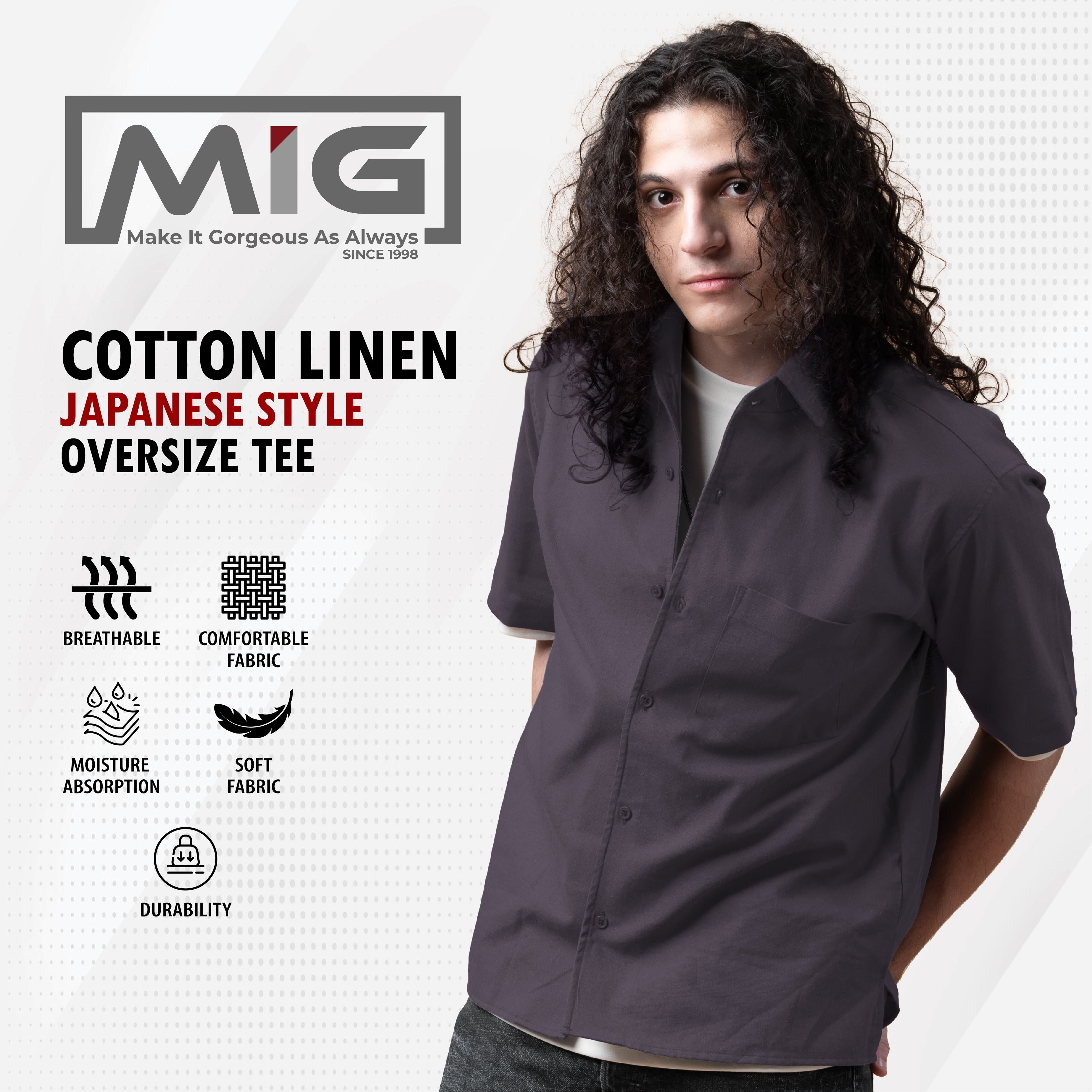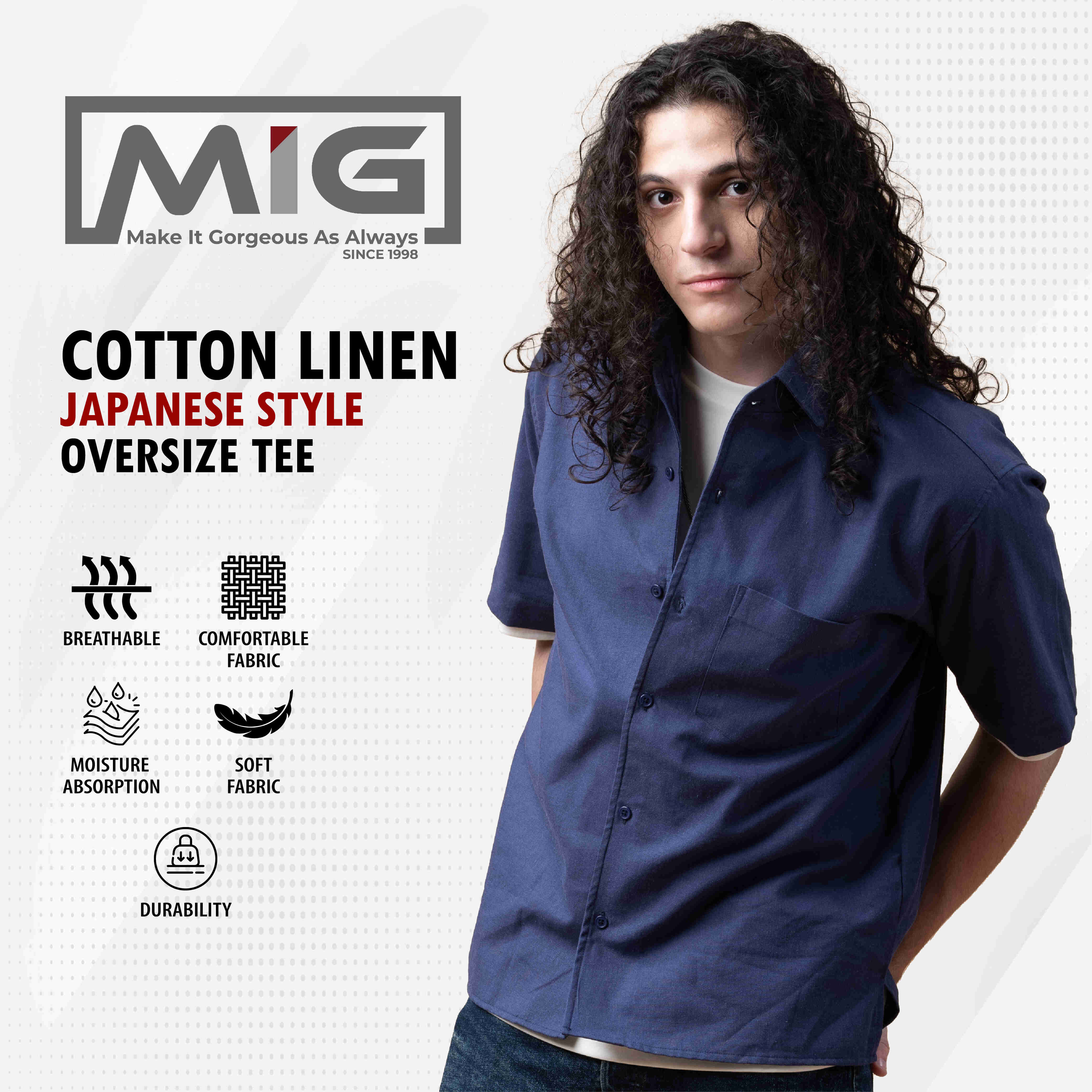 MIG Cotton Linen Vintage Baggy Plus Size Plain Loose Oversized Casual Collar Shirt - 1002|,|