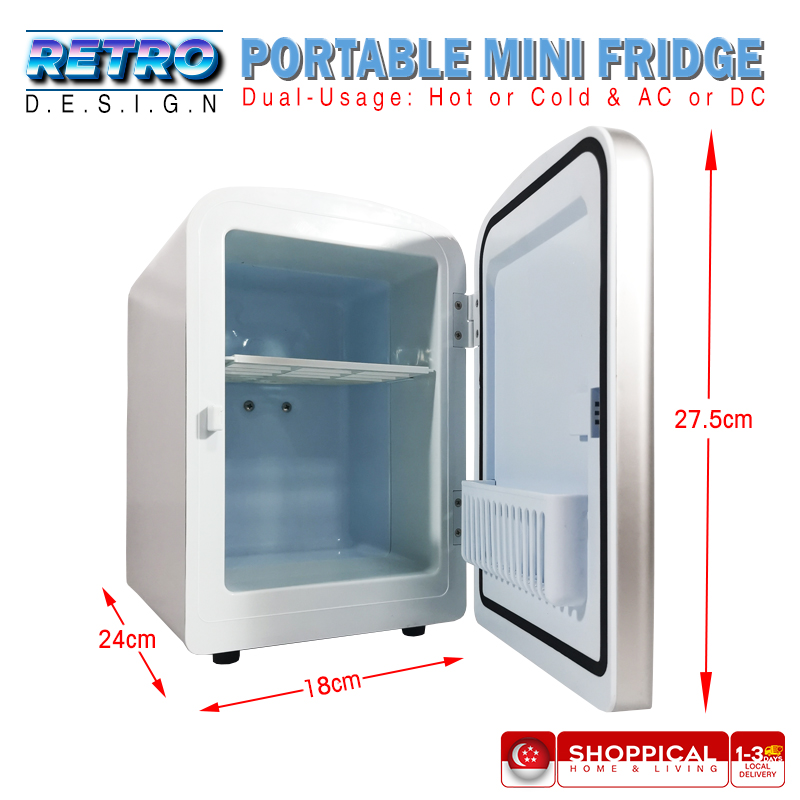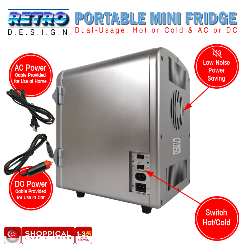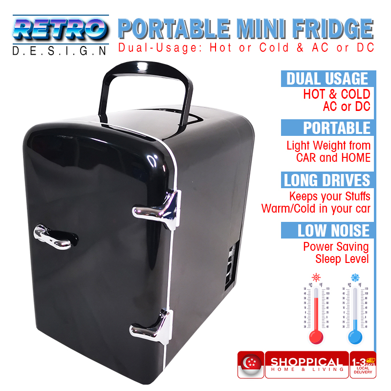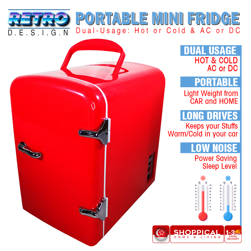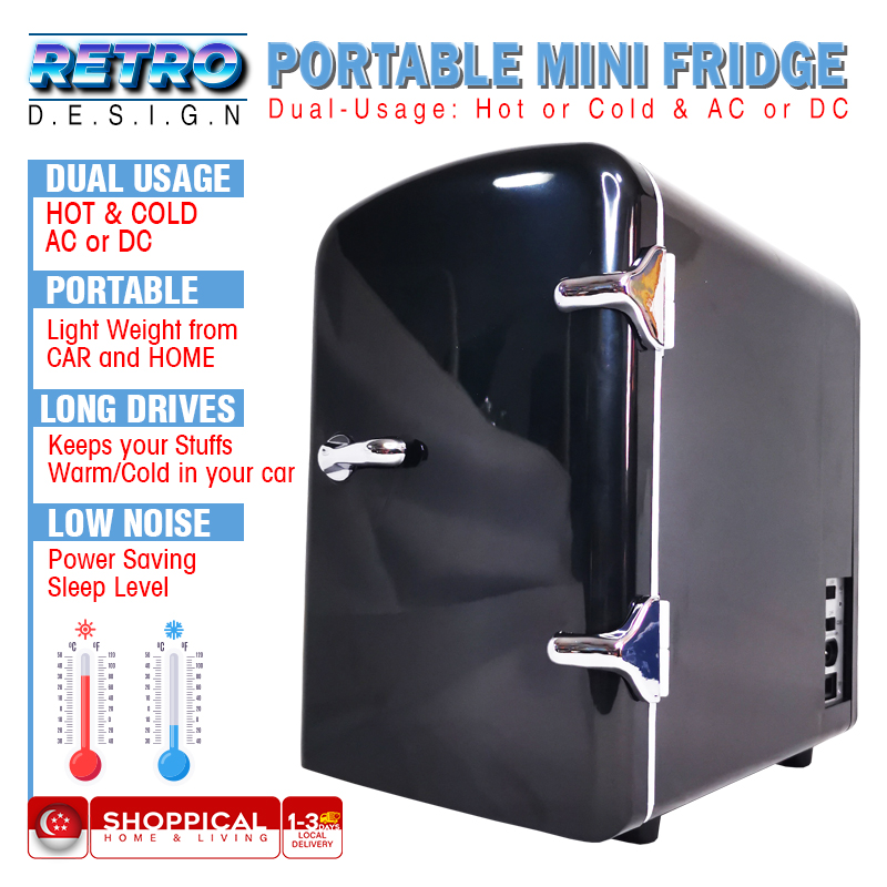 1. The Mini Portable (Retro Design) 4 litre Cold and Warm Refrigerator can be used at Home or in a Car.
