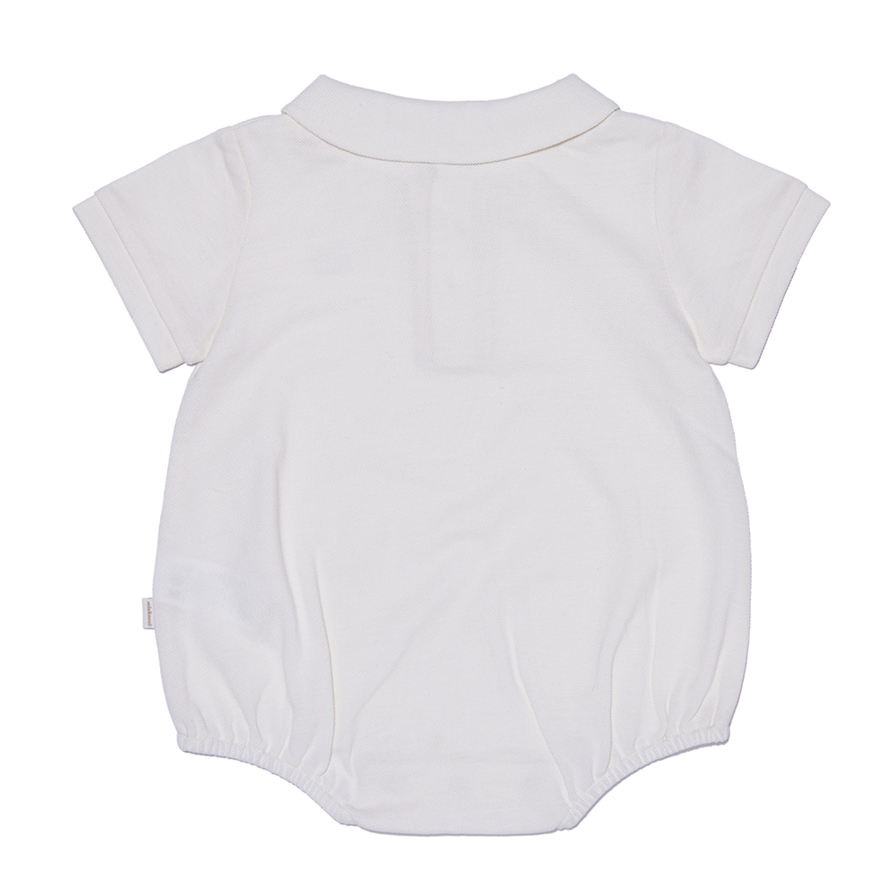 This pique collared bodysuit comes in a pure ivory color and is made of soft and thin pique fabric, allowing for a lightweight and comfortable wearing experience. The collar design adds a touch of luxury to the item.