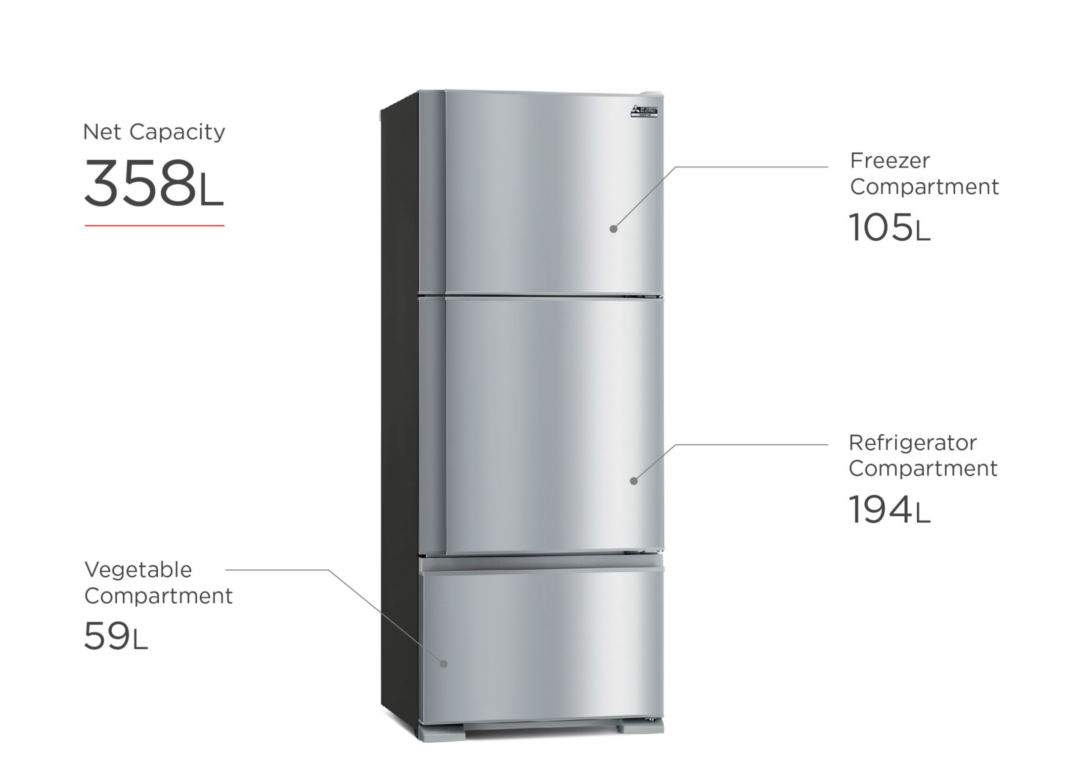 Mitsubishi MR-V50E2G 3-Doors Refrigerator 358L|,|
