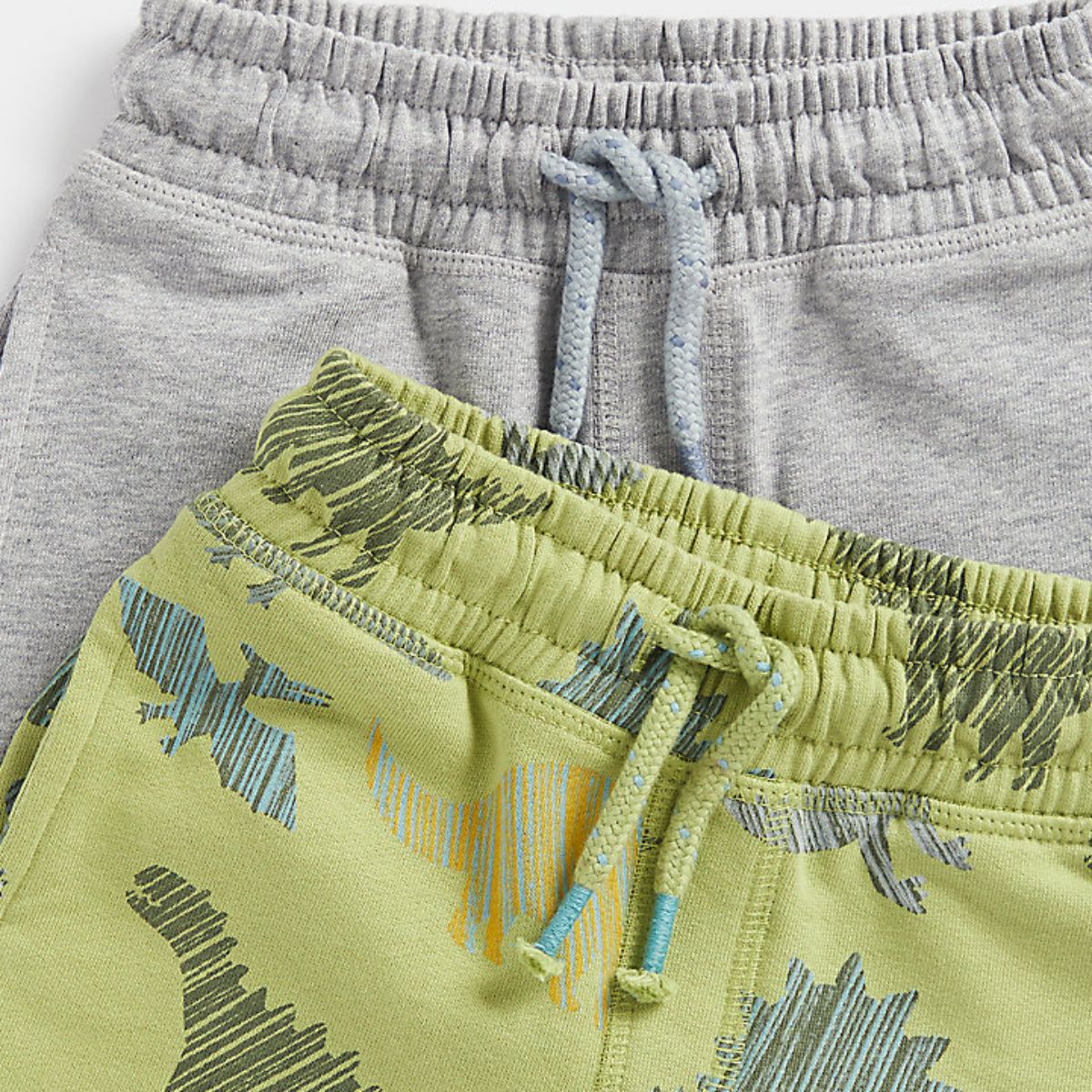 Made for dinosaur lovers, these cotton joggers have wide, stretchy waistbands for easy dressing and all-day comfort. Adjustable drawcords keep them fitting snugly and pockets are on hand to store essentials. In grey and green with cool dinosaur prints and textured lettering.