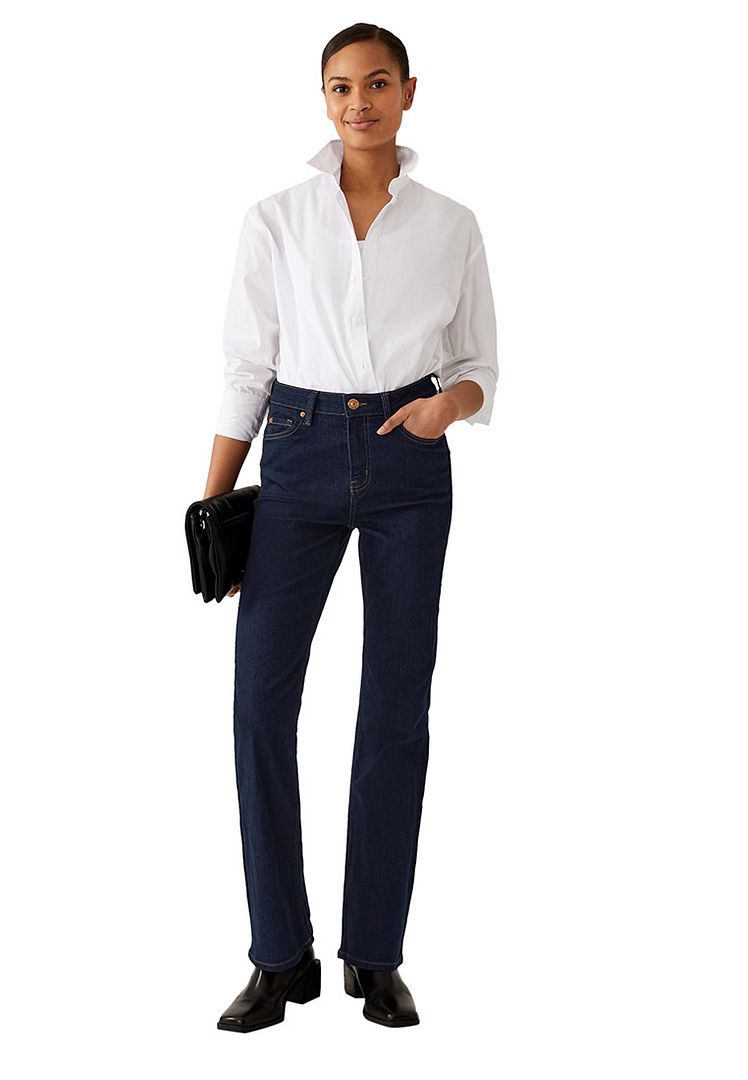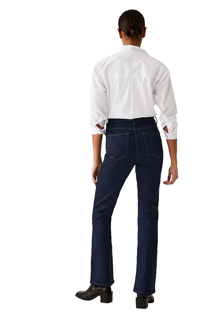 Feel effortlessly chic in our cotton-rich Eva jeans. Slim bootcut shape with a flattering high waist and ankle grazer length. Super stretchy fabric and soft denim ensures our best ever fit and feel. Made with recycled polyester. All M&S denim is made with responsibly sourced cotton and less water.Product Style: Bootcut fit, Button and zip fastening, High waisted, Added stretch, All M&S denim is made with responsibly sourced cotton and uses less water, with the aim of lowering the environmental impact of our jeans.Material Composition: 83% cotton, 15% polyester and 2% elastane (exclusive of trimmings)Care instructions: Keep away from fire and flames