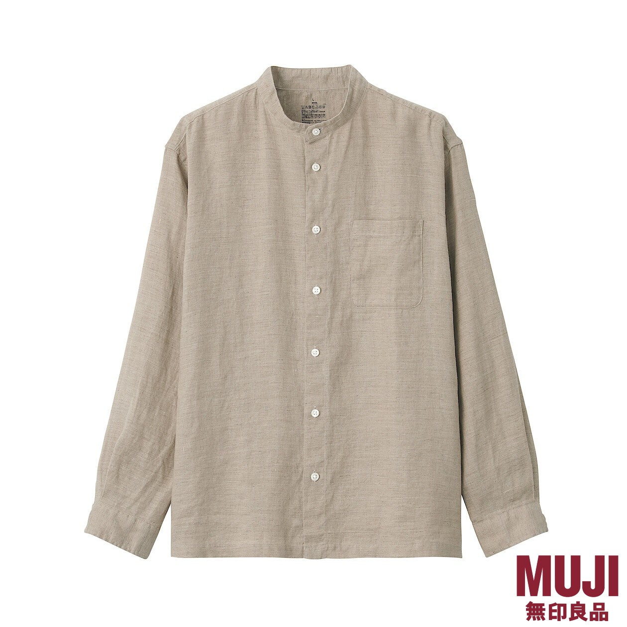 MUJI Mens Hemp Washed Stand Collar Shirt