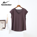 Newdenber Women Summer V-neck Sleeveless Shirt Bamboo Fiber Top Plain Cotton Ladies Slim T-shirt|,|
