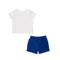 This 2 piece top and bottom set consists of crew neck tee with matching wide leg shorts. The faux vest adds a fun twist to the style and you little gentleman is ready to go!