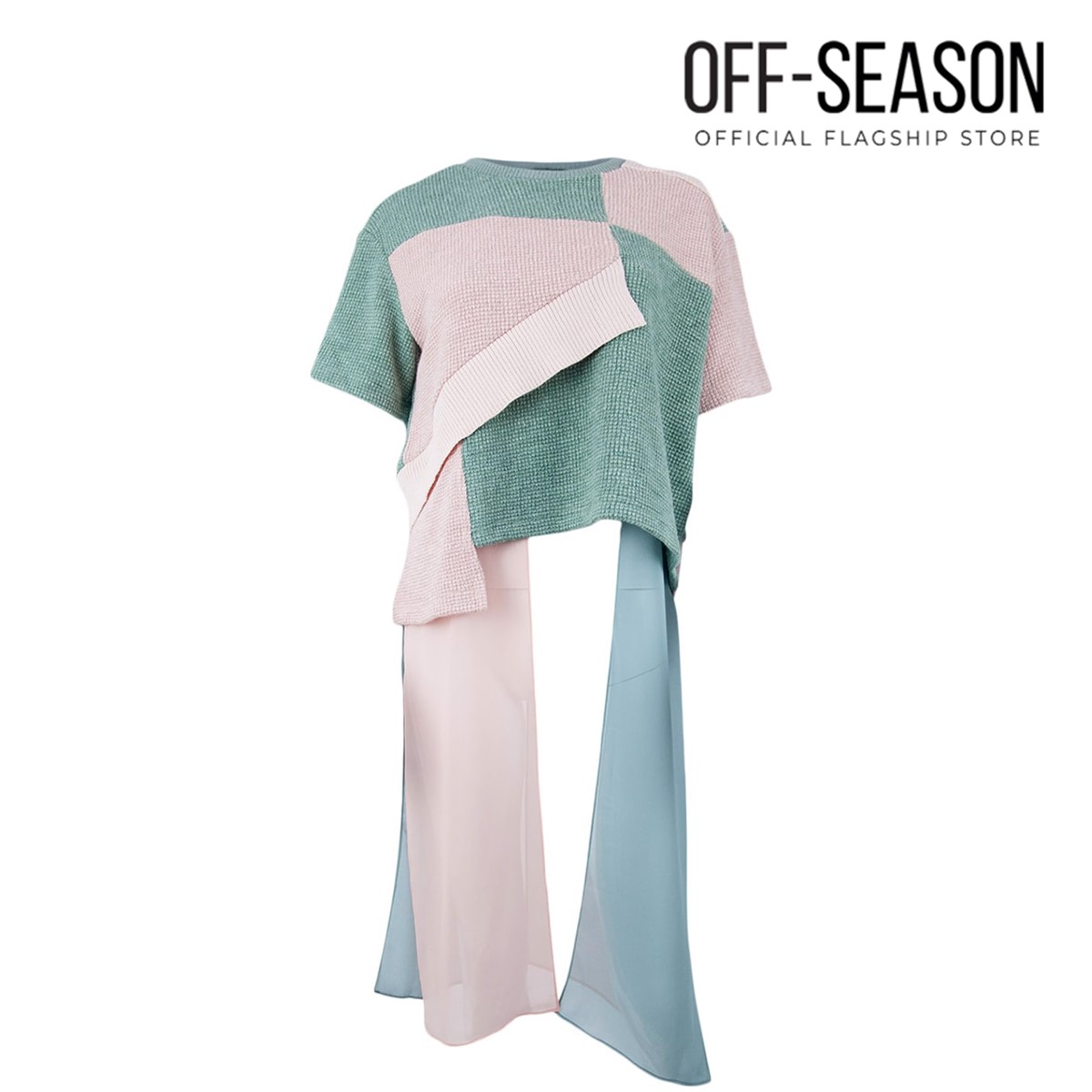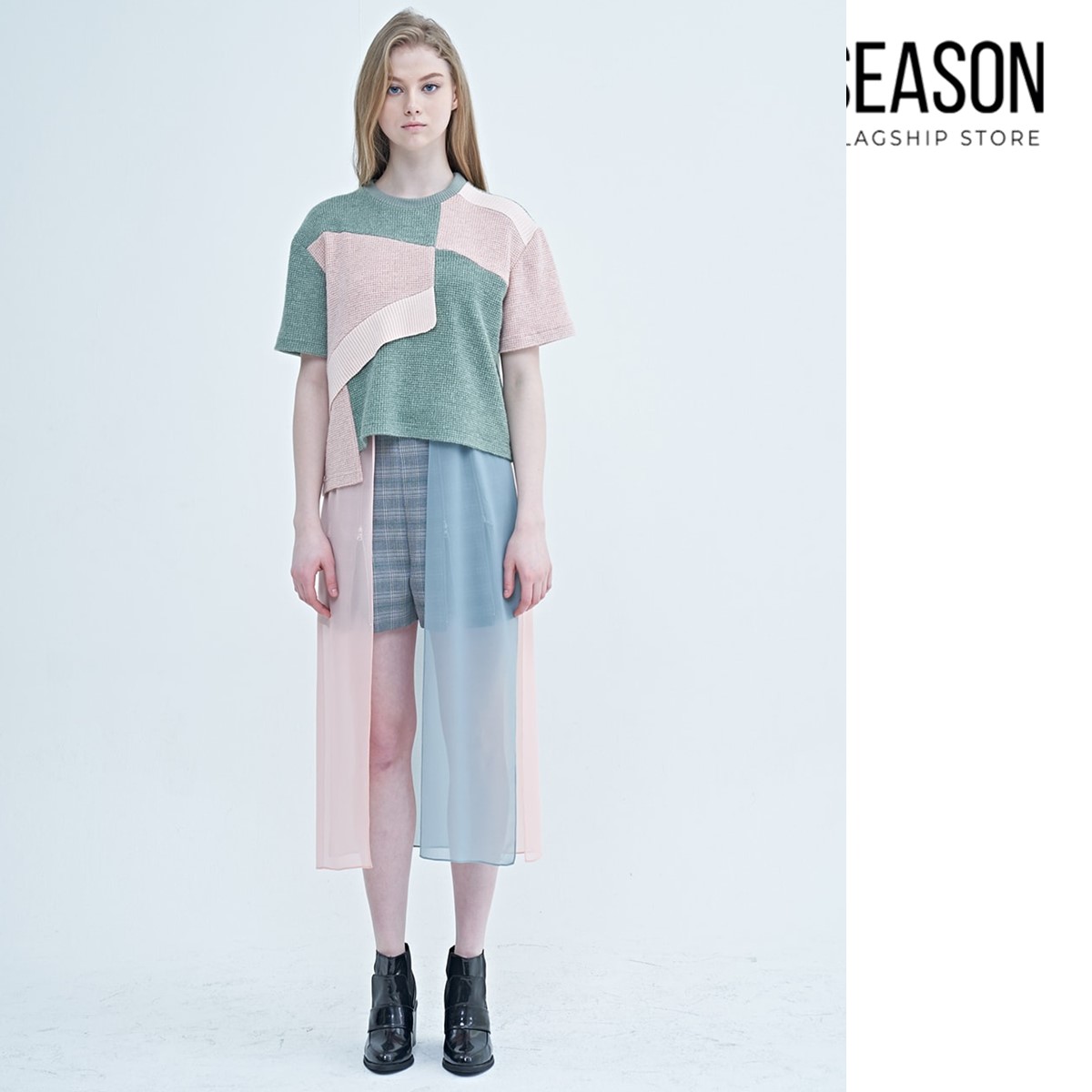 LIE Fall Winter 2019 Short-Sleeve Top Asymetrical Panels Flowy Tunic Hem Material: Acrylic, Wool, Mohair Care: Dry clean recommended Origin: Korea