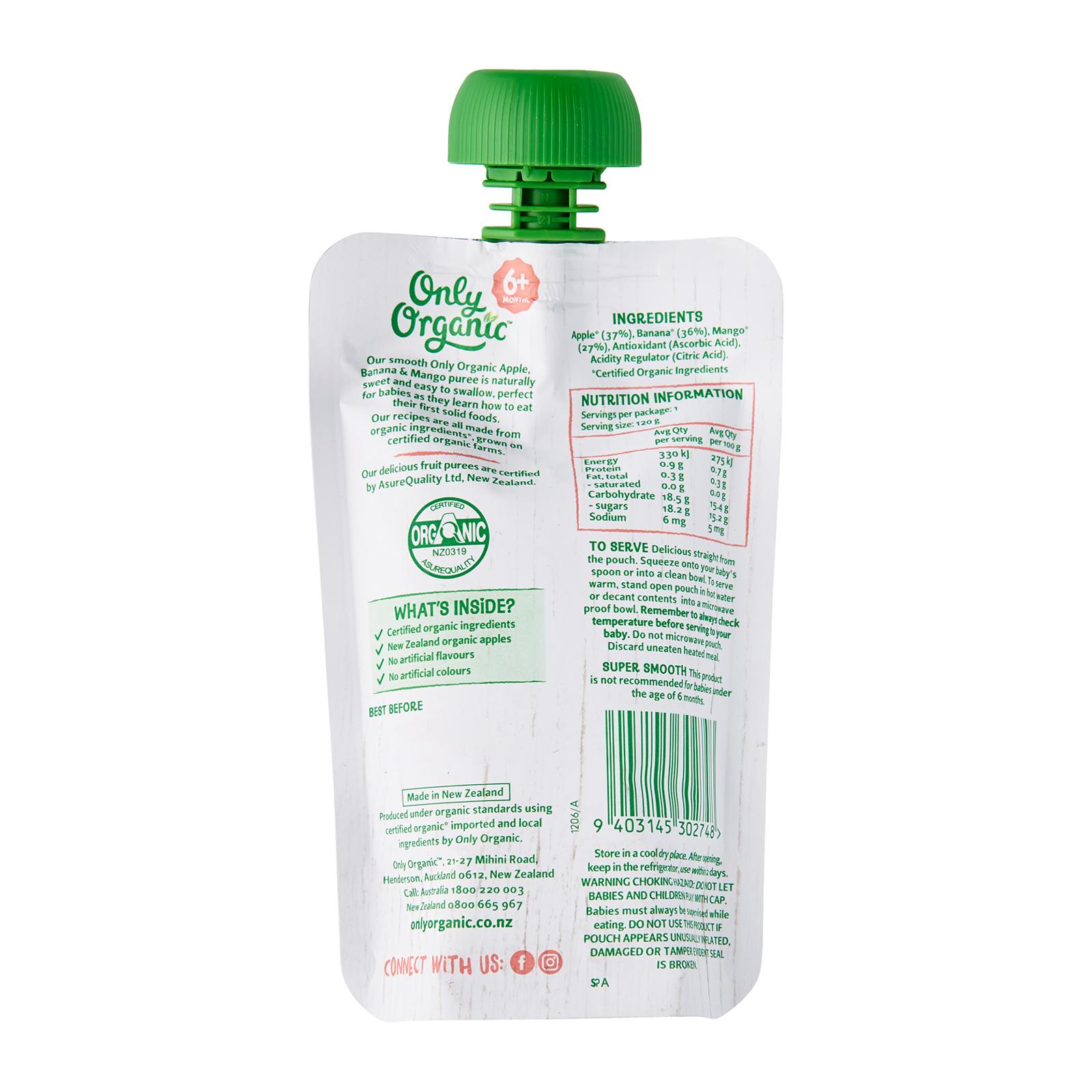 ORGANIC INGREDIENTS: Apple* (37%), Banana* (36%), Mango* (27%), Vitamin C, Acidity Regulator (Citric Acid). *Certified Organic Ingredients