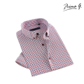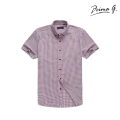 Prima Apparel PG041 Men Short-sleeved Mini Check Red Blue Shirt Cotton Tapered No Pocket Work Business Interview Formal Corporate|,|