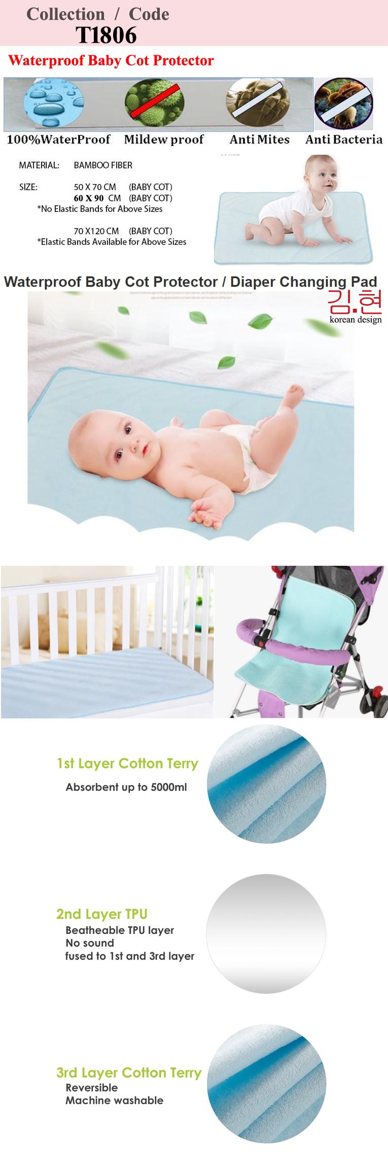 [ SG Local Seller ] ( 60 X 90 CM ) Waterproof Baby Cot Protector ❤ Diaper Changing Pad ❤ Pram Stroller Protector ❤ Bamboo Fibre Material T1806 [ By Kim Hyeon ]|,|