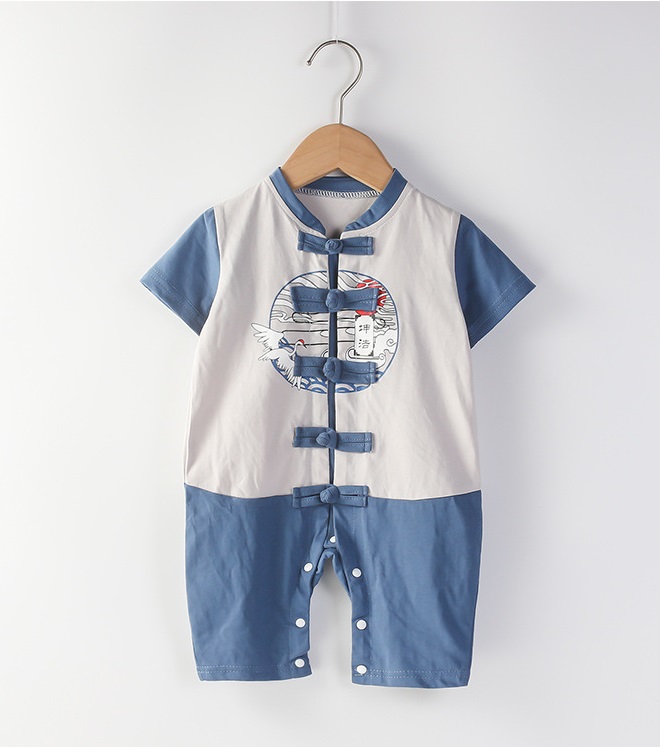 [SG Ready Stock] CSRB050 Baby Toddler Boy Chinese CNY Traditional Romper Jumpsuit Onesie Crane Yellow Blue [Little Gems]|,|