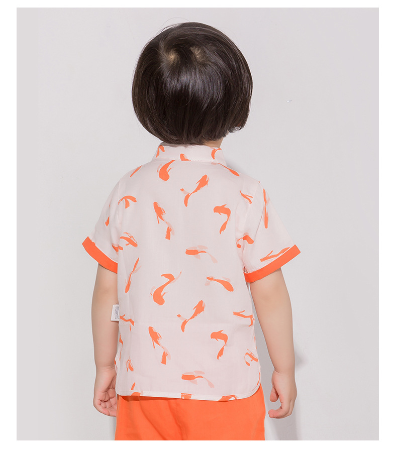 [SG REady Stock] TZ055A Baby Toddler Boys Traditional Chinese Kungfu Mandarin Collar Top Shirt [Little Gems SG] Koi Orange Green Sz 73 80 90 100 110 (1-4 yrs)|,|