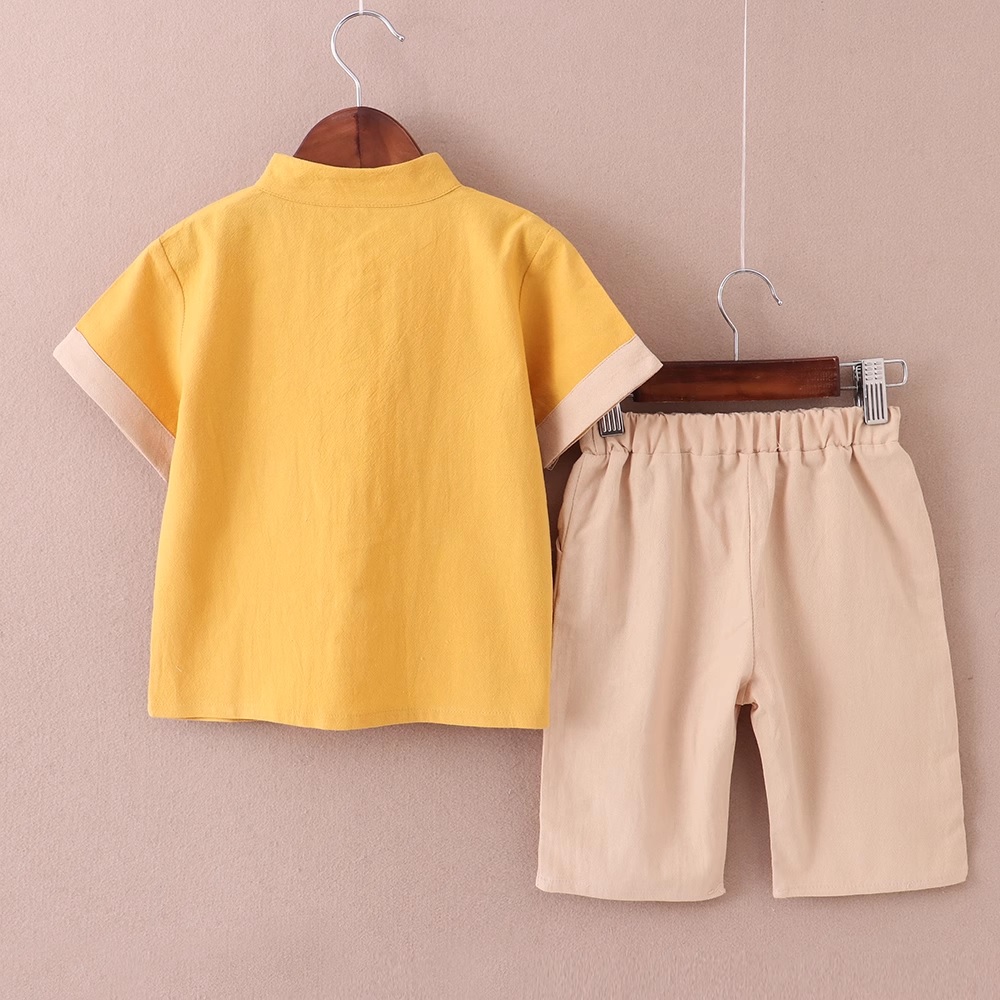 [SG Ready Stock] TZ058 Toddler Boys Traditional Mandarin Embroidered Kungfu Lion CNY Chinese Top & Pants Set [Little Gems SG] Sz 90-130 Red Sage Blue|,|