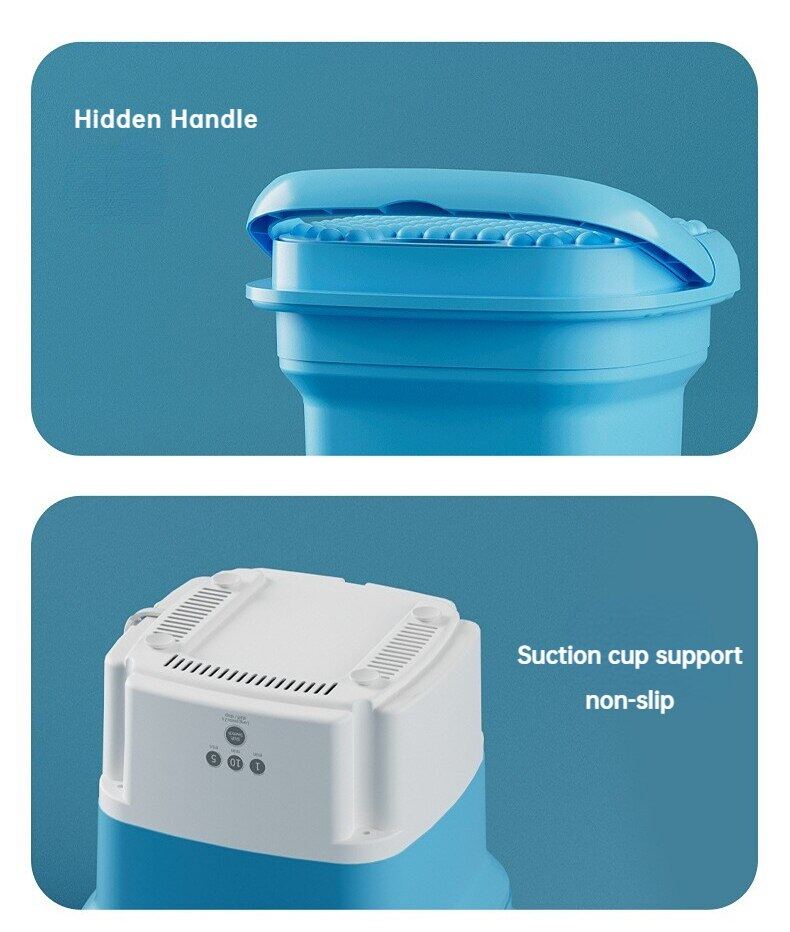 Product name: Folding washing machine Working method: pulsator Product material: TPE+PP Product power: 36W Product power supply: 220V-50Hz Product color: blue, pink. green Product folded size: 38*38*20CM Model: HA-WM-FD2207 Dimensions: 205*205*260mm(Unfold), 205*205*110mm(fold) Material: ABS+TPR Weight: 1500g Color: Blue/Pink Voltage: 220V Power: 153W advantage: 1. Stop at the point, intelligent washing in 0-15 minutes 2. Water saving, electricity saving, multi-effect environmental protection 3. Store at any time without taking up space 4. Press down to fold, easy to fold 5. Low noise 6:Applicable: Products that can be used for socks, underwear, panties, small clothes