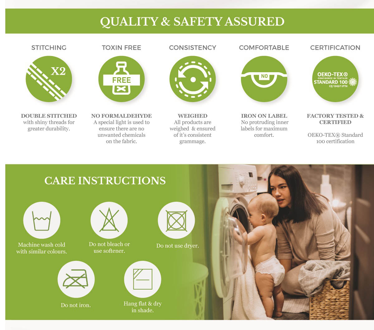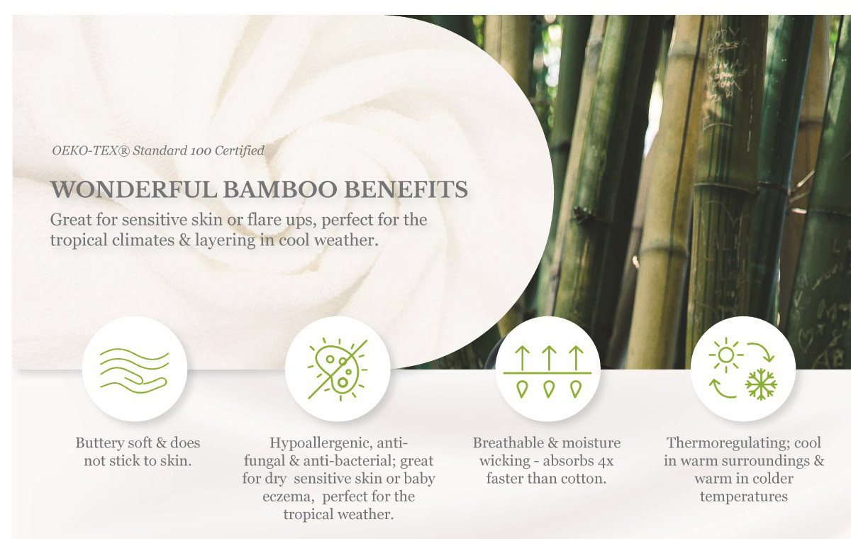 The naturally hypoallergenic bamboo fabric cares for your child's sensitive skin, keeping them happy and radiant! Perfect for the tropical and humid weather. Double stitched for durability with soft seams for greater comfort!