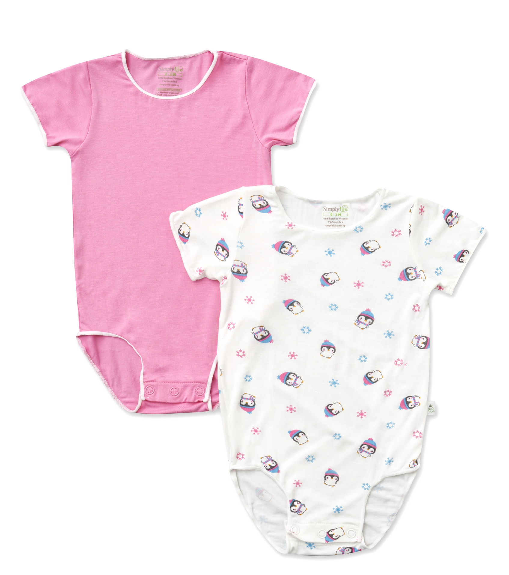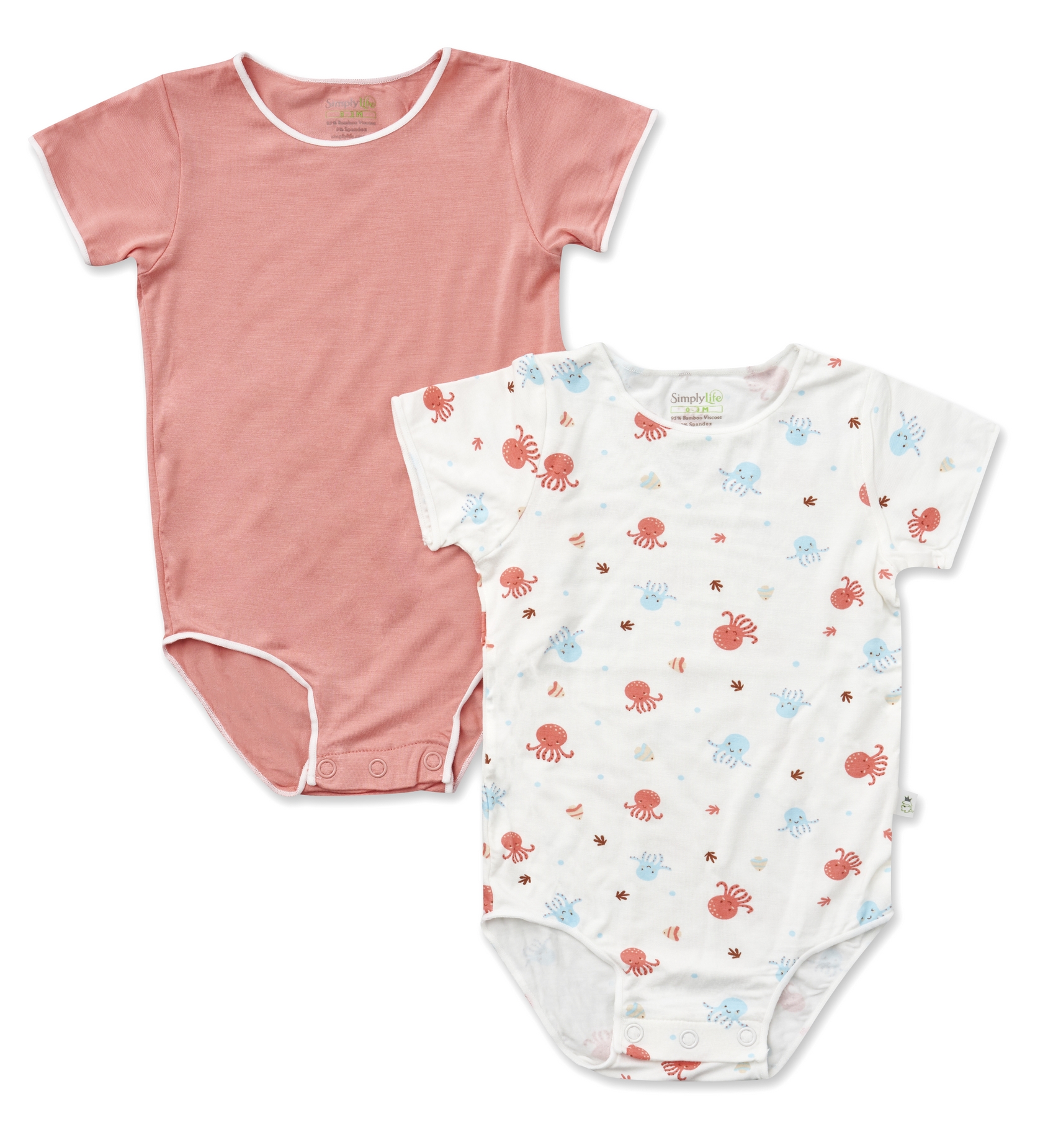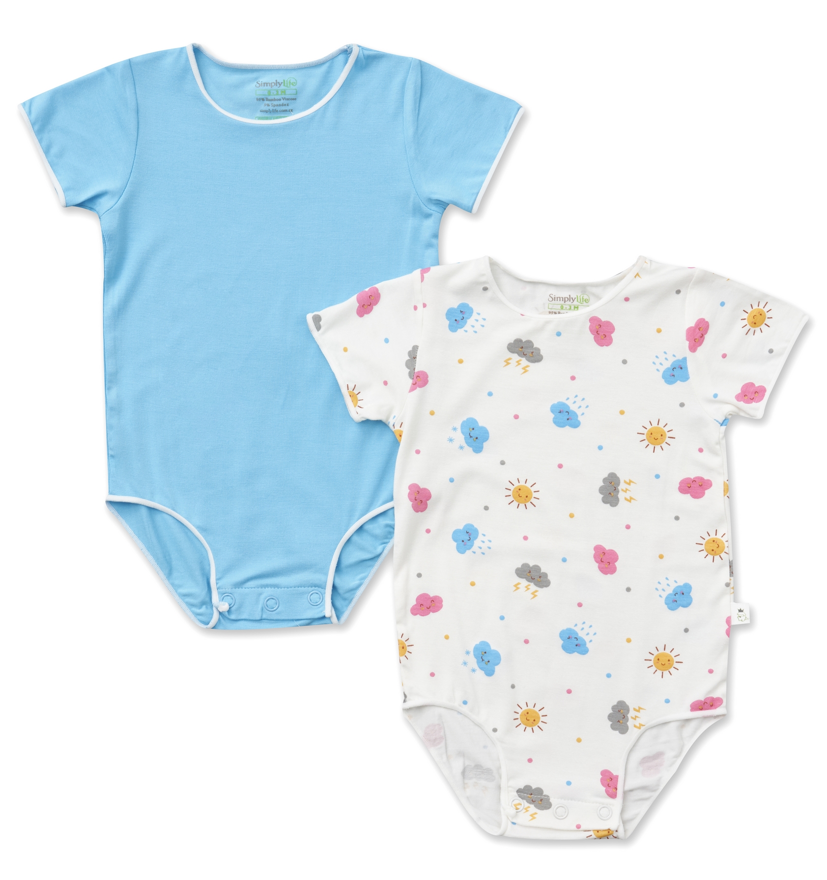 Simply Life - Bamboo Stretchy Easy Wear Onesie Romper (Value Pack of 2) (Girl Boy Unisex, Baby Newborn Infant)|,|