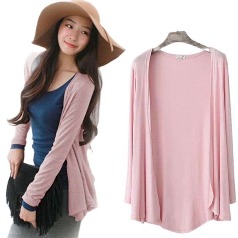 Stella Fashion Women Long-Sleeved Thin Cardigan Jacket Loose Modal Thin Mid-length Plus size Sun Protection women Cardigan|,|