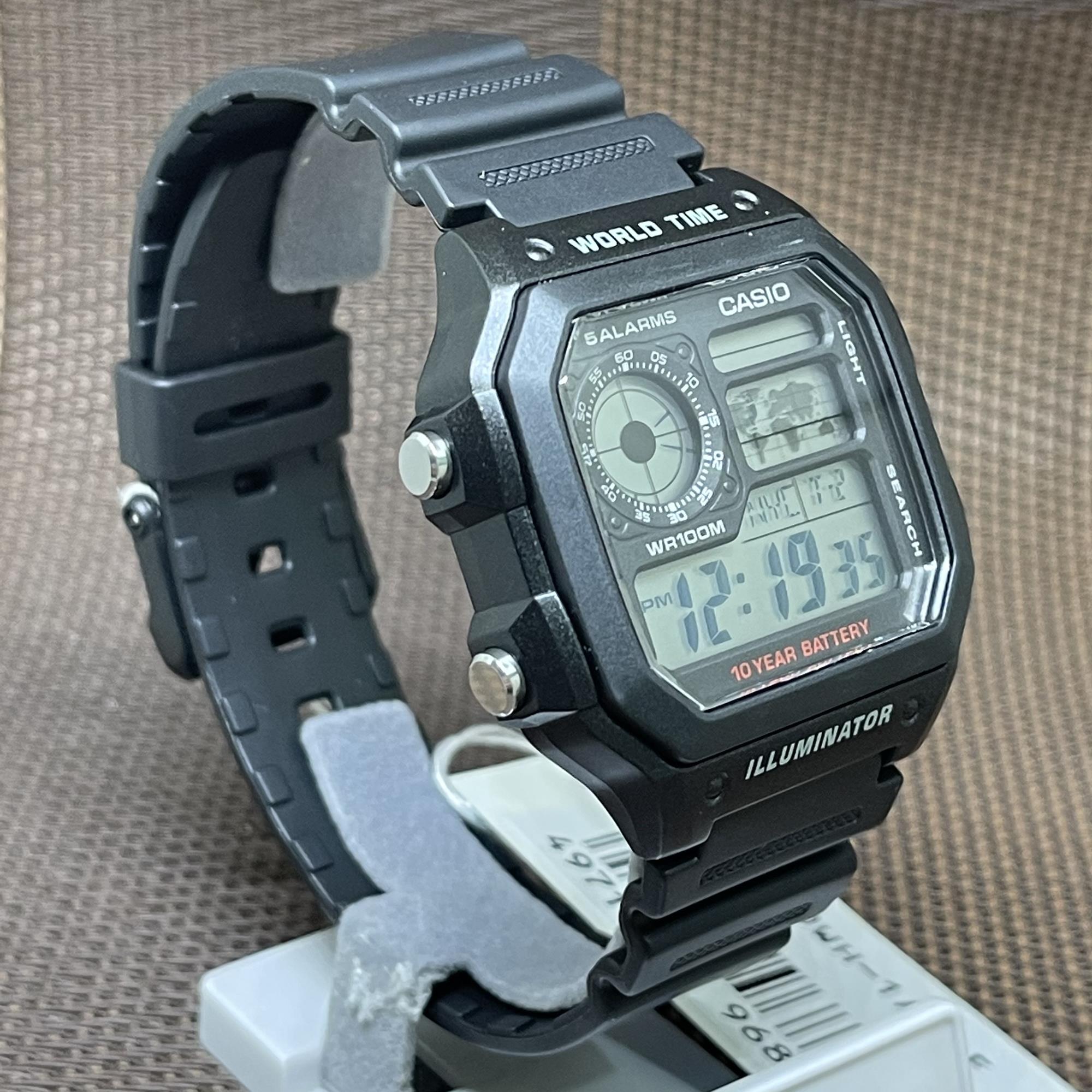 [TimeYourTime] Casio AE-1200WH-1A World-Time World Map Black Resin Digital Sport Watch|,|