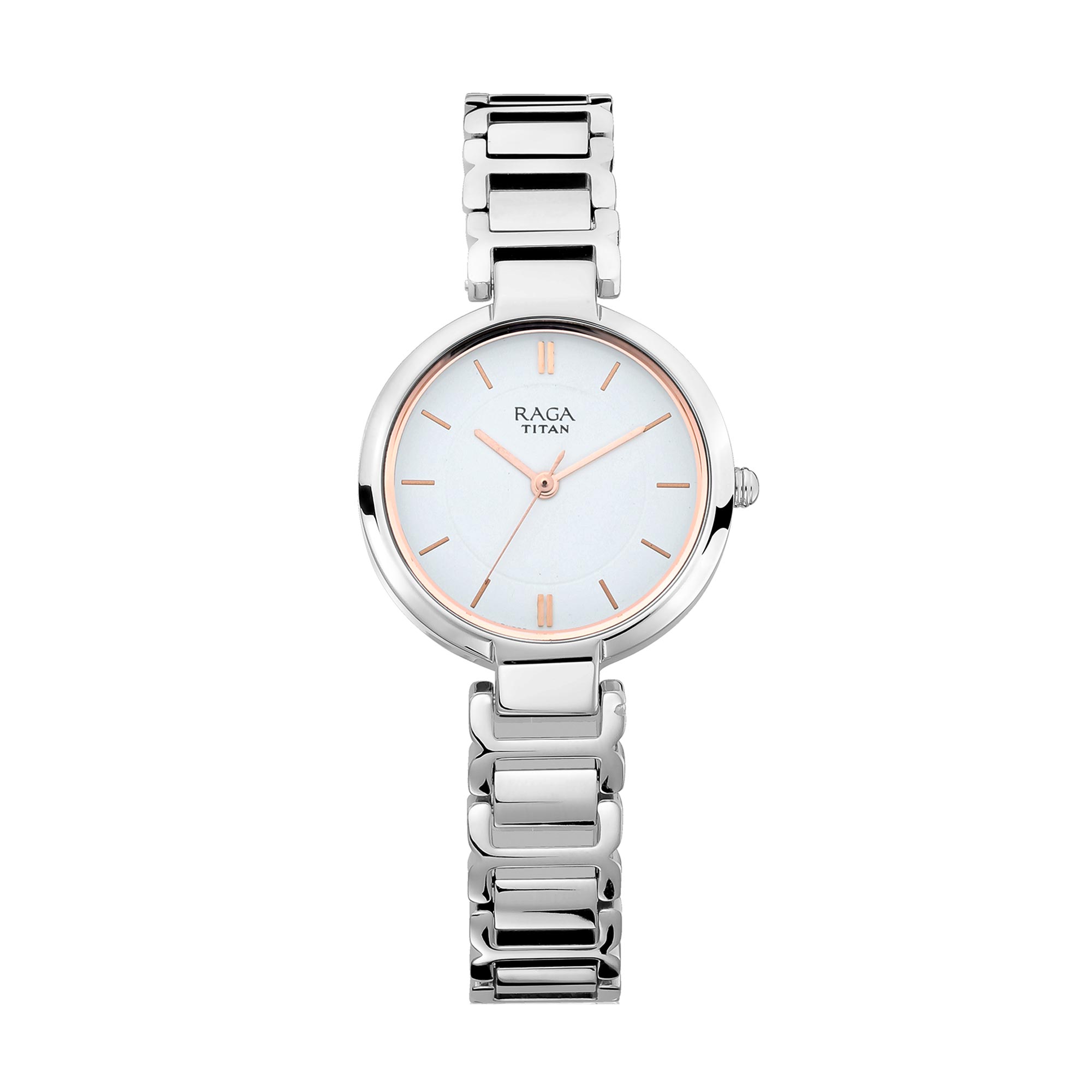 Titan Raga White Dial With Silver Metal Strap Women's Watch 2608SM01|,|