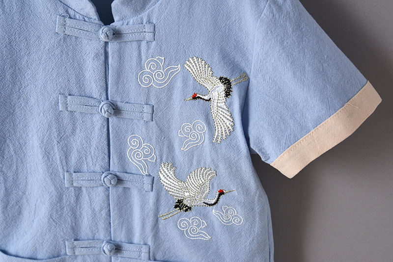 TZ050A New Toddler Boys Traditional Chinese 2 pc Kungfu Set Embroidered Cranes [Little Gems SG] sz 90 -140 Red Blue|,|