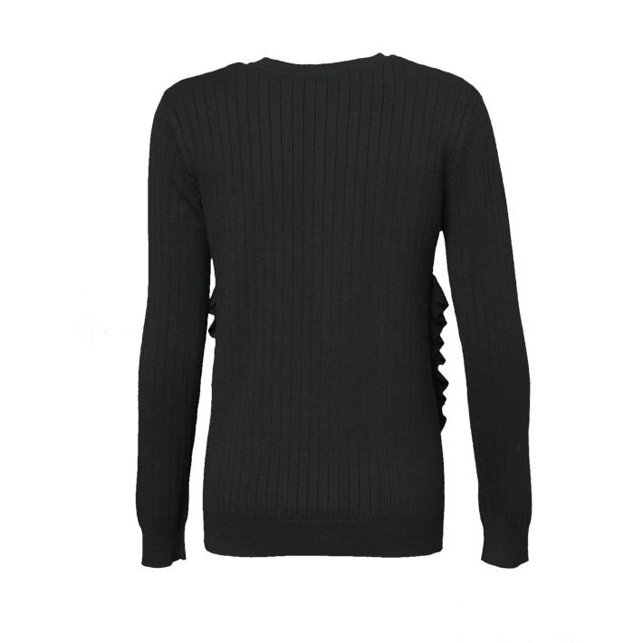 Women’s knit sweater with side ruffle frills on bodice, embracing uniqueness and individuality.